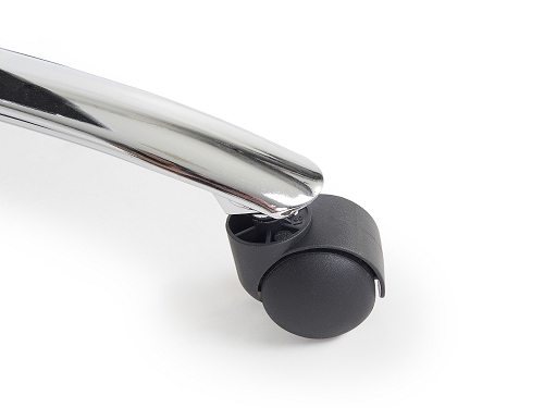 • Silbernes Sicherheitsfußkreuz aus stabilen verchromten Metall mit 5 Doppelsicherheitsrollen