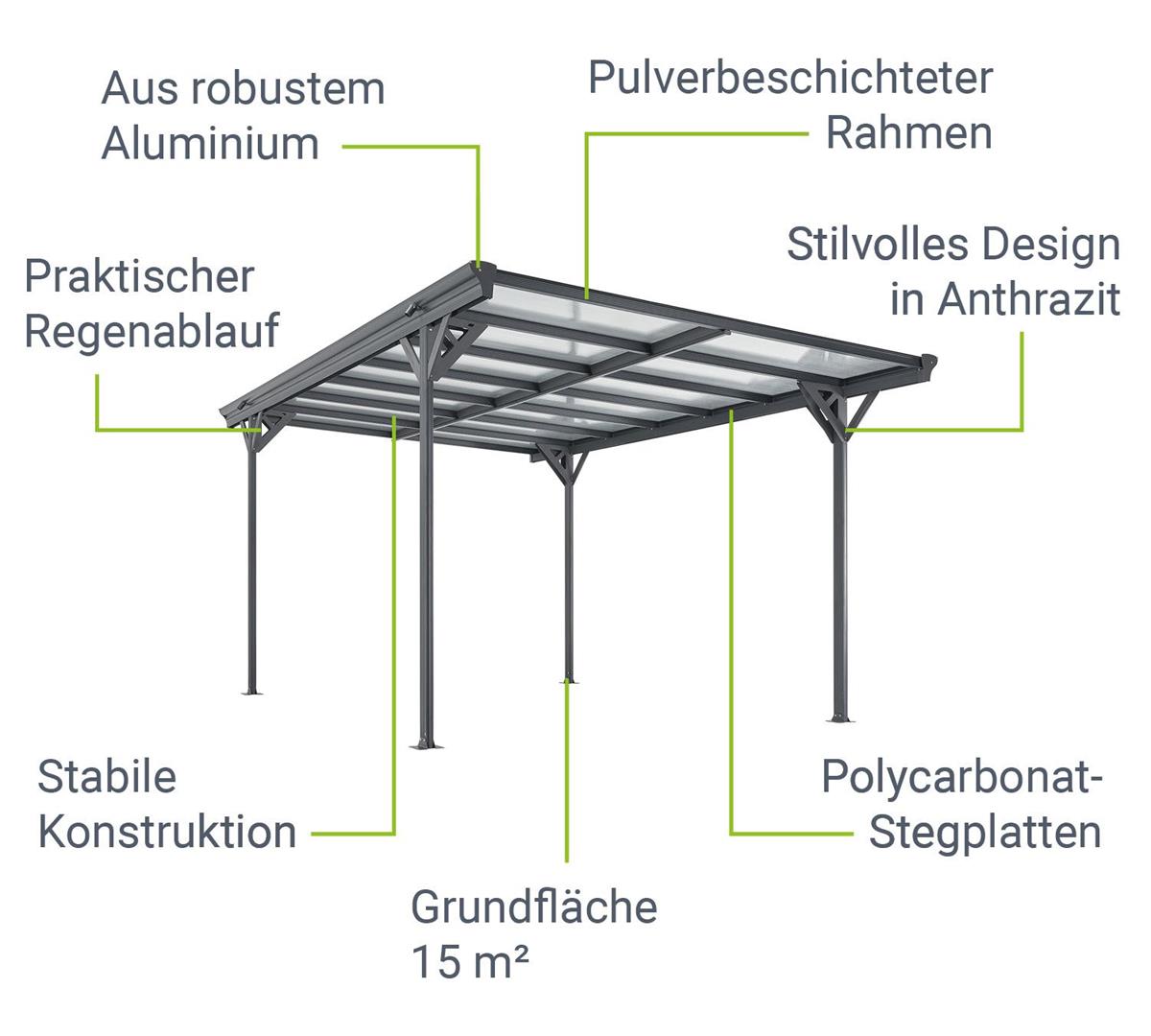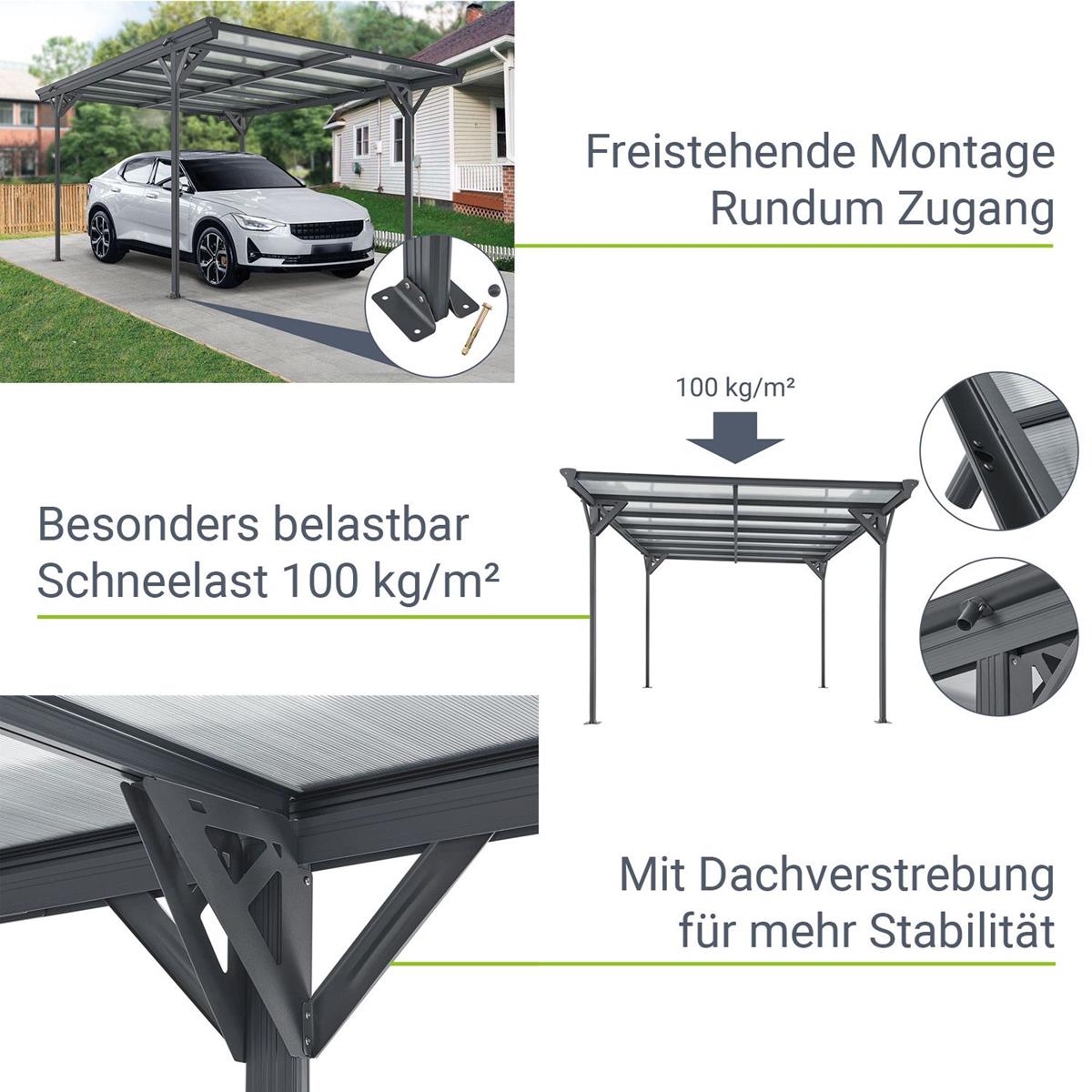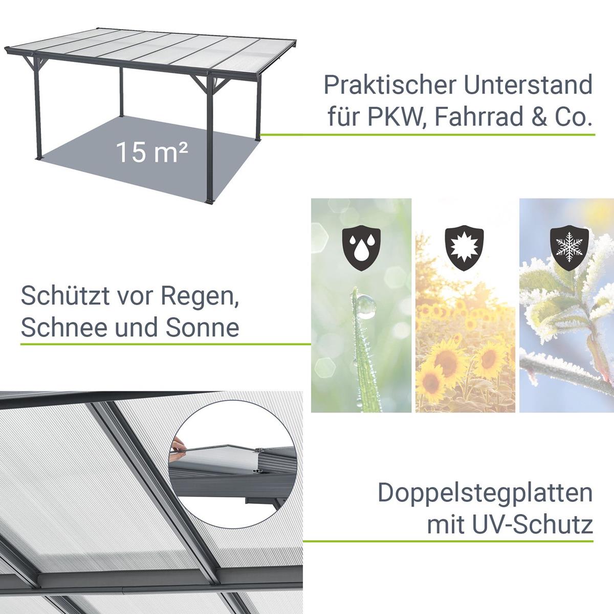 Aluminum carport München with flat roof 5 x 3 m for car motorcycle trailer boat canopy dark gray anthracite stable roof cheap