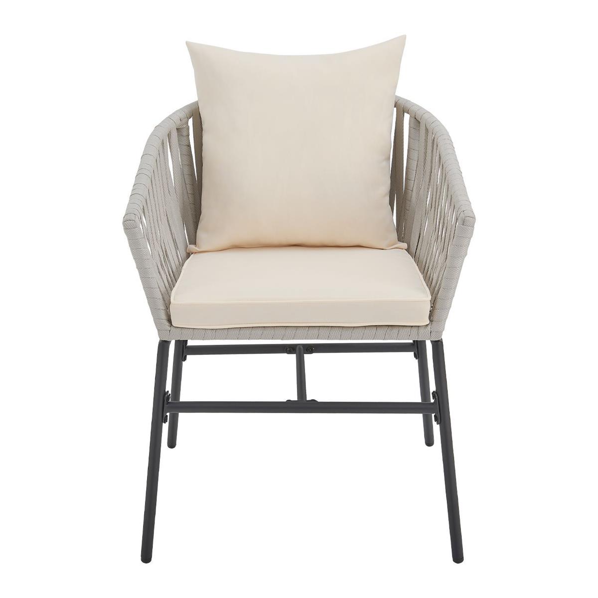 Preview: Set of 2 garden chairs Riga light gray armchair with seat cushion upholstery balcony chairs garden furniture steel stable patio