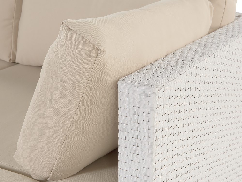 Write an evaluation for "Rattan garden furniture set „Sun“ rattan lounge for garden terrace balcony couch rattanlounge white + beige"