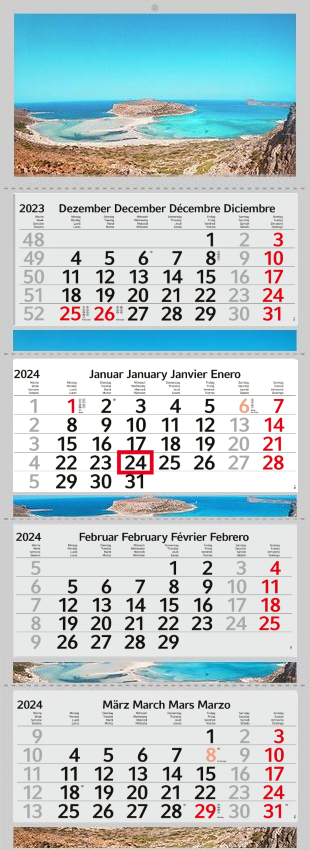 4 month calendar for 2024 - beautiful motif calendar with dream beach Balos Beach Crete without advertising with 4x 12 pages (multi-block calendar)