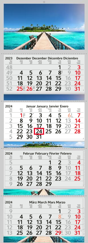 4 month calendar for 2024 - beautiful motif calendar with Maledives Beach dream island without advertising with 4x 12 pages (multi-block calendar)