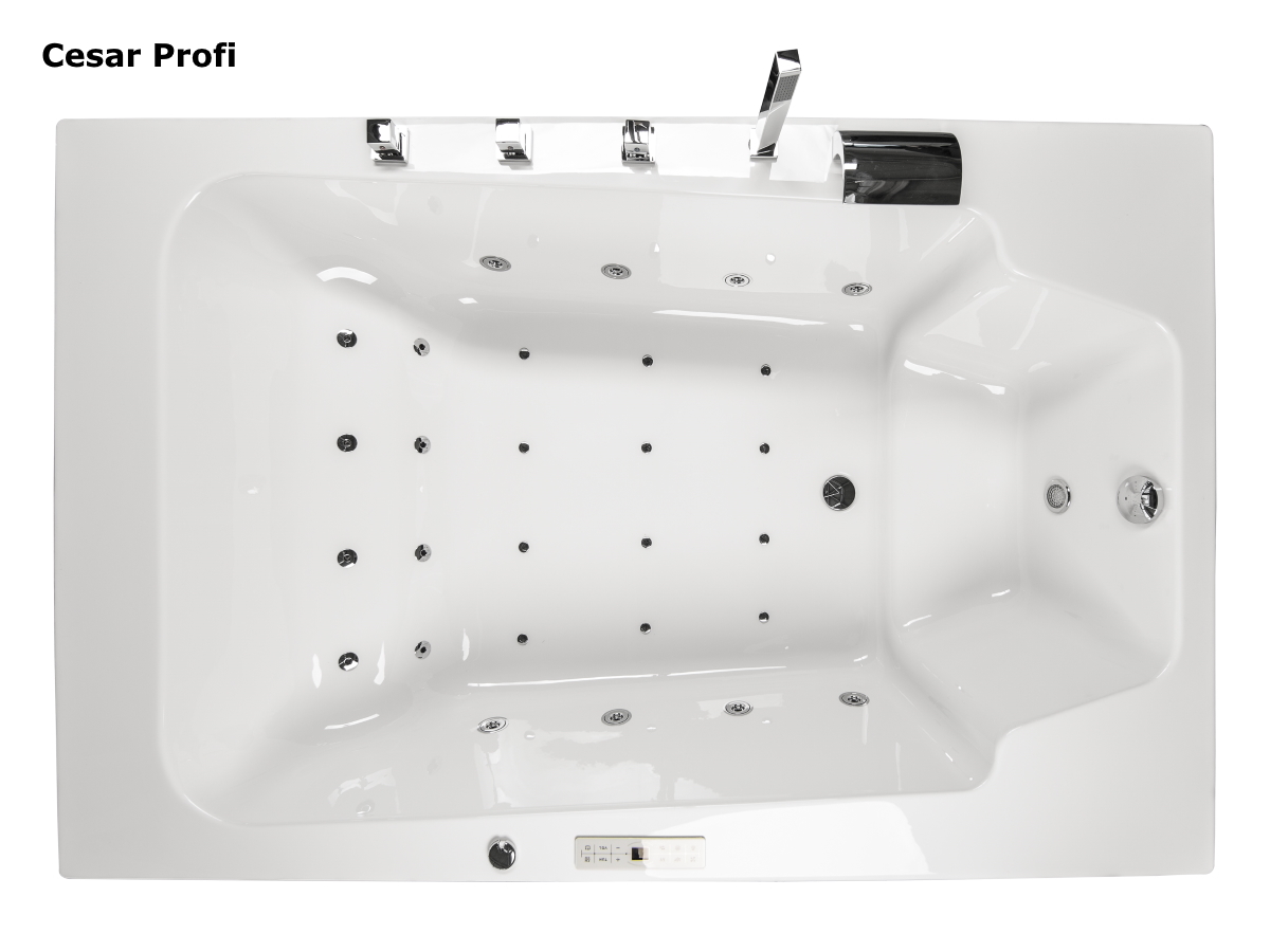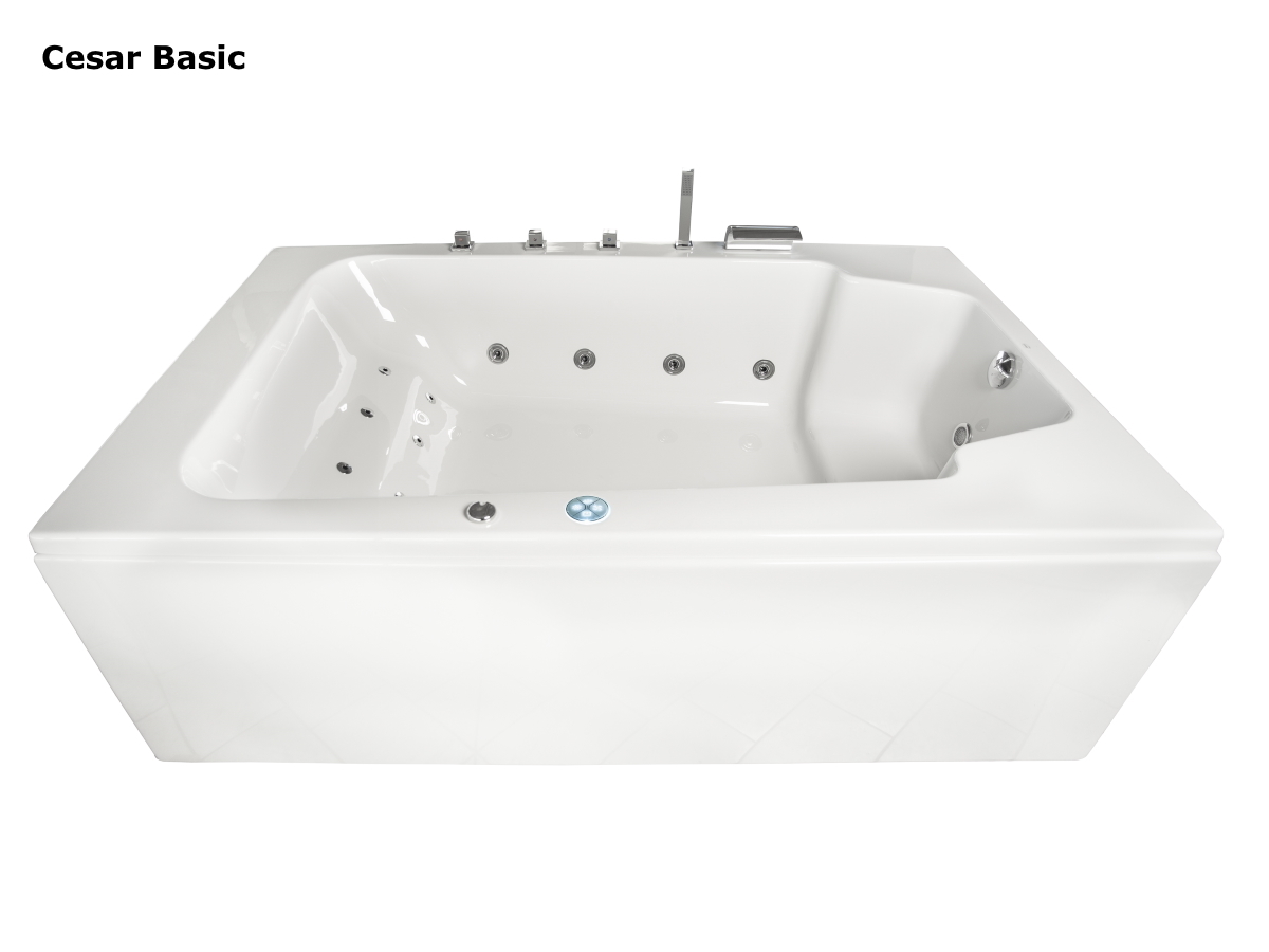Write an evaluation for "Whirlpool luxury bathtub Cesar 190x120 cm LEFT with 16 or 28 massage jets + LED + optional heating + ozone selectable"