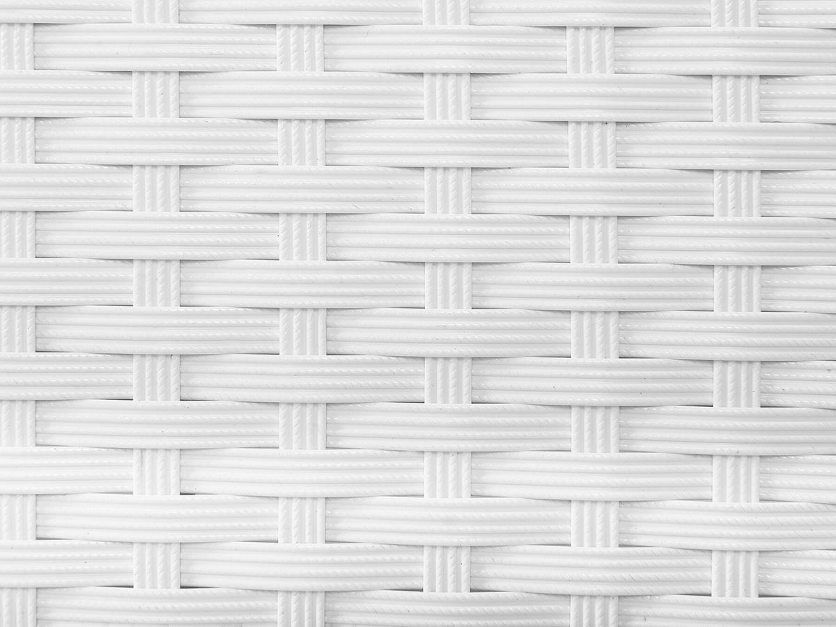 Polyrattan Geflecht (PE Rattan) in der Farbe weiss.