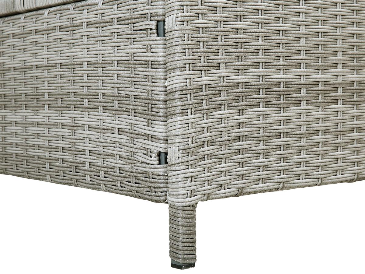 Das Polyrattan Geflecht besteht aus einem neuartigen Rattan ähnlichen Kunststoff, der wetterfest und besonders strapazierfähig ist, wodurch eine besonders dauerhafte Nutzbarkeit der Gartenmöbel sichergestellt wird. Das Material besteht aus einer extrem stabilen Rattan ähnlichen Kunststofffaser, die 100% UV-beständig ist und handgeflochten wird. Polyrattan besteht aus Polyethylen und zeichnet sich durch hohe Belastbarkeit aus.