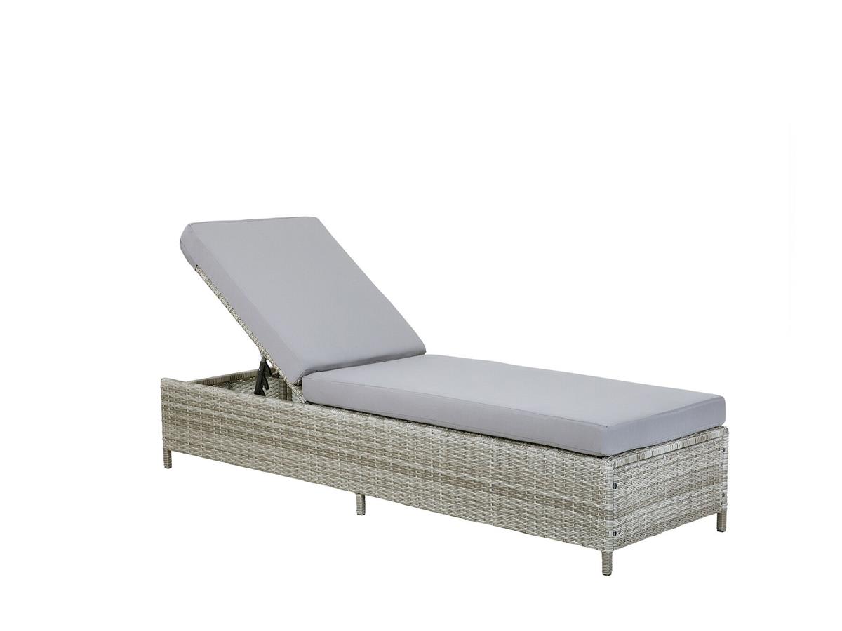 Rattan Gartenliege Toronto grau meliert inkl. Polsterauflage Sonnenliege für Garten Terrasse Balkon Liege Liegestuhl Gartenmöbel