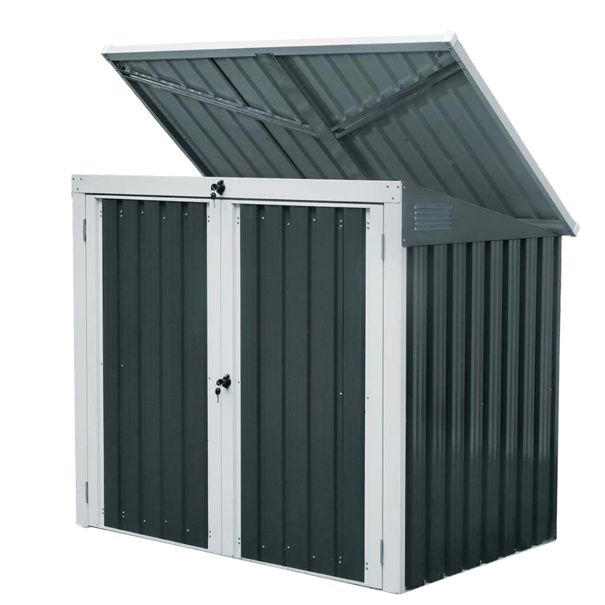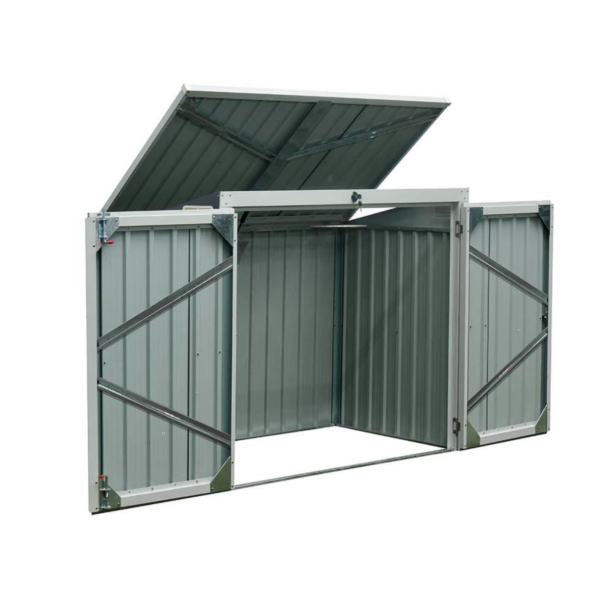 XL 2er Mülltonnenverkleidung Mülltonnenbox Bremen für 2x 240 Liter / 2-3x 120 Liter Mülltonnen Geräteschuppen grau anthrazit Box Stahlbox Geräte Werkzeug