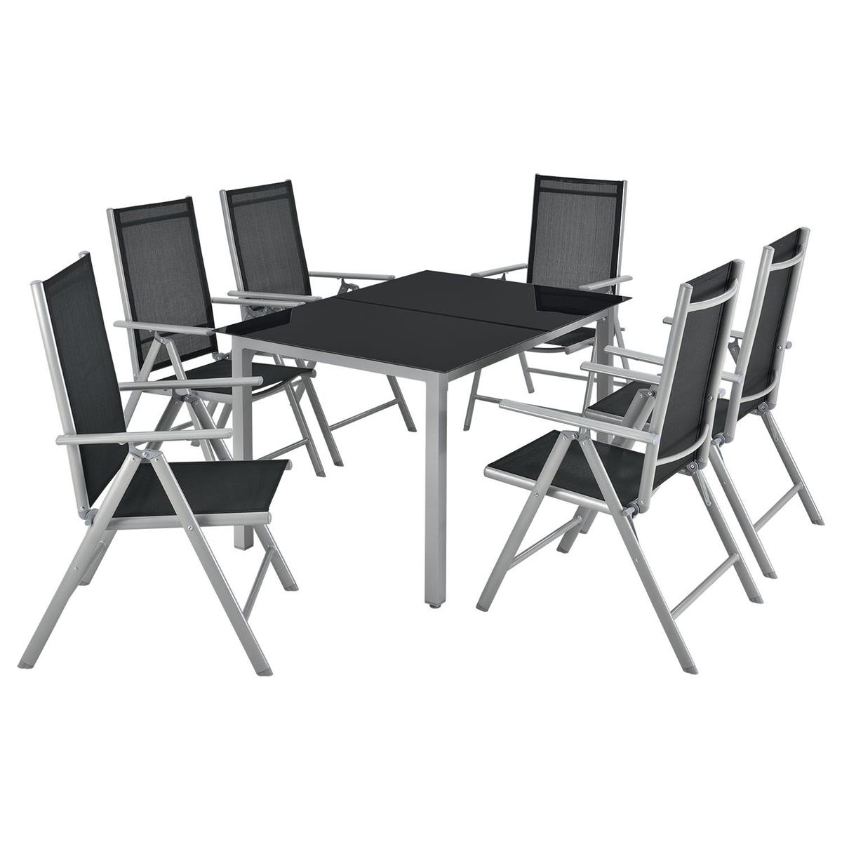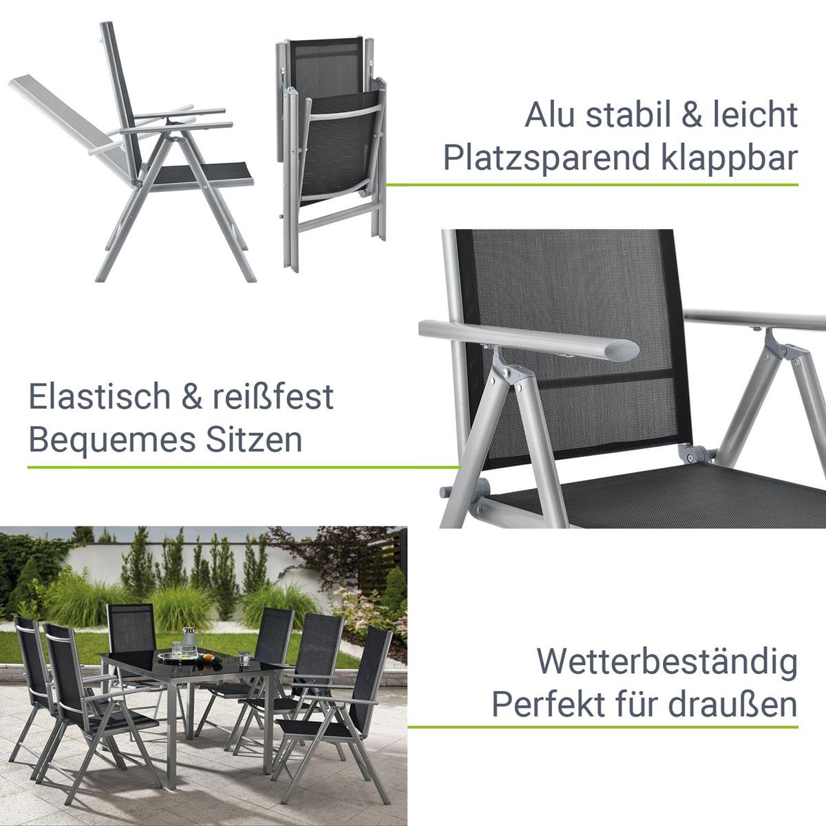 Aluminium Gartenmöbel Set Monaco Sitzgruppe dunkelgrau o. silber Sitzgarnitur Tisch mit 6 x Stuhl für 6 Personen Terrasse Garten Balkon
