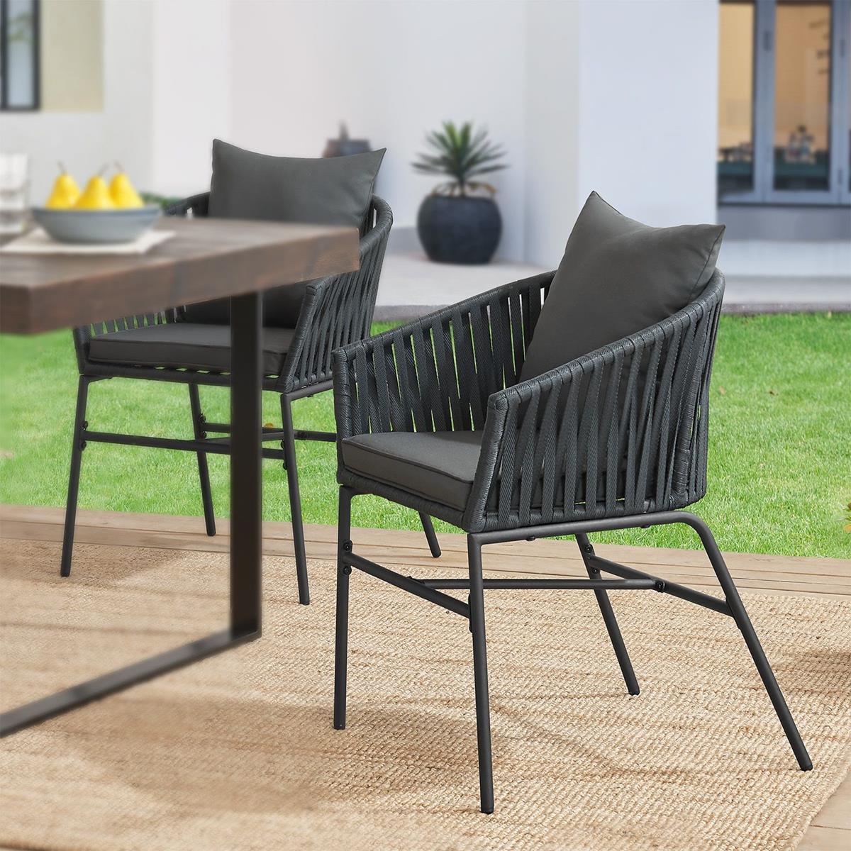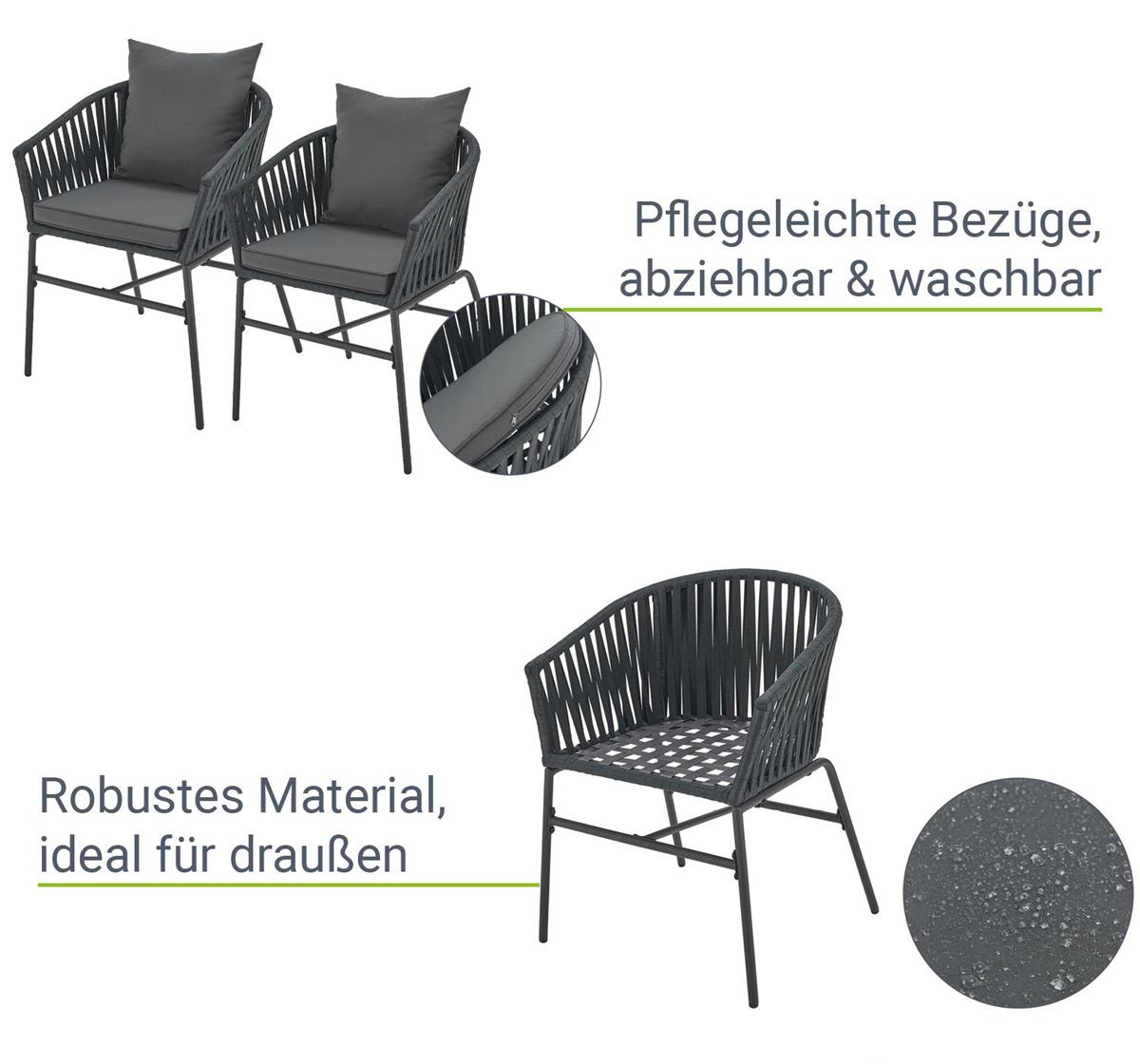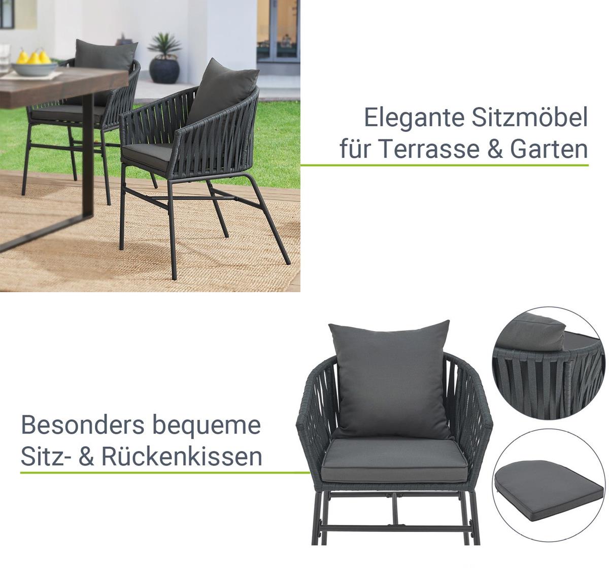 2er Set Gartenstühle Riga dunkelgrau Sessel mit Sitzkissen Polster Balkonstühle Gartenmöbel Stuhl Gartenstuhl Stahl stabil Terrasse Garten Balkon