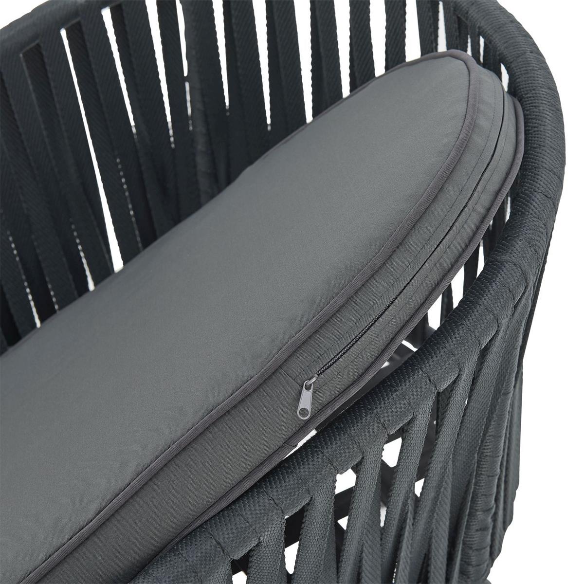 Sehr stabil und sehr langlebig durch hochwertigen pulverbeschichteten Stahl und langlebigen Seilgeflecht in der Farbe dunkelgrau / anthrazit - weitere Farben finden Sie bei unseren Gartenmöbeln.