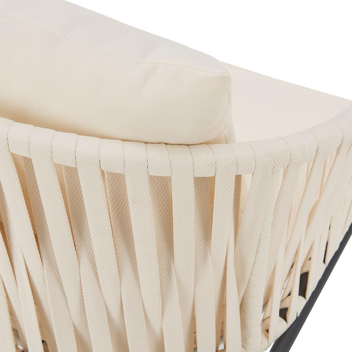 Sehr stabil und sehr langlebig durch hochwertigen pulverbeschichteten Stahl und langlebigen Seilgeflecht in der Farbe beige - weitere Farben finden Sie bei unseren Gartenmöbeln.