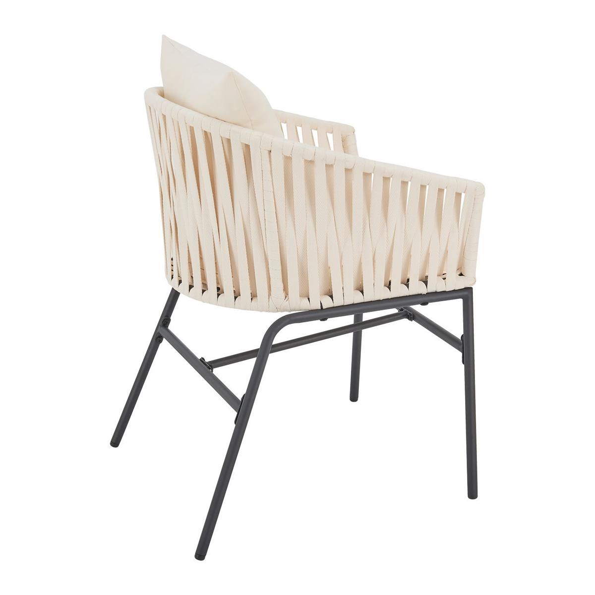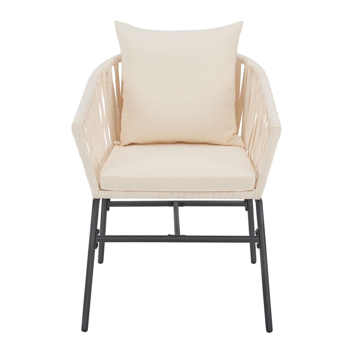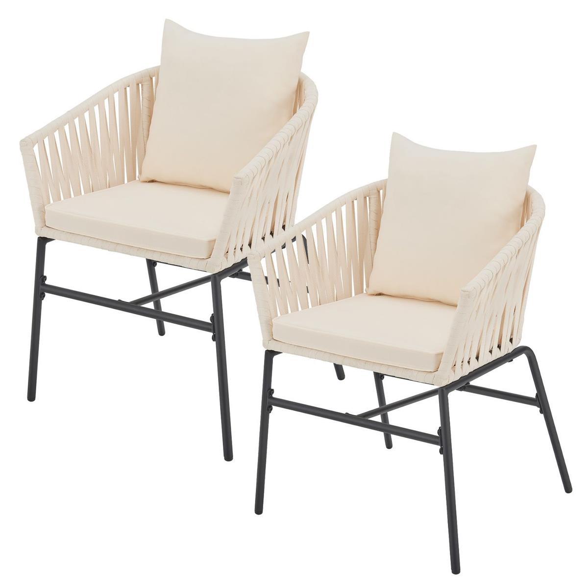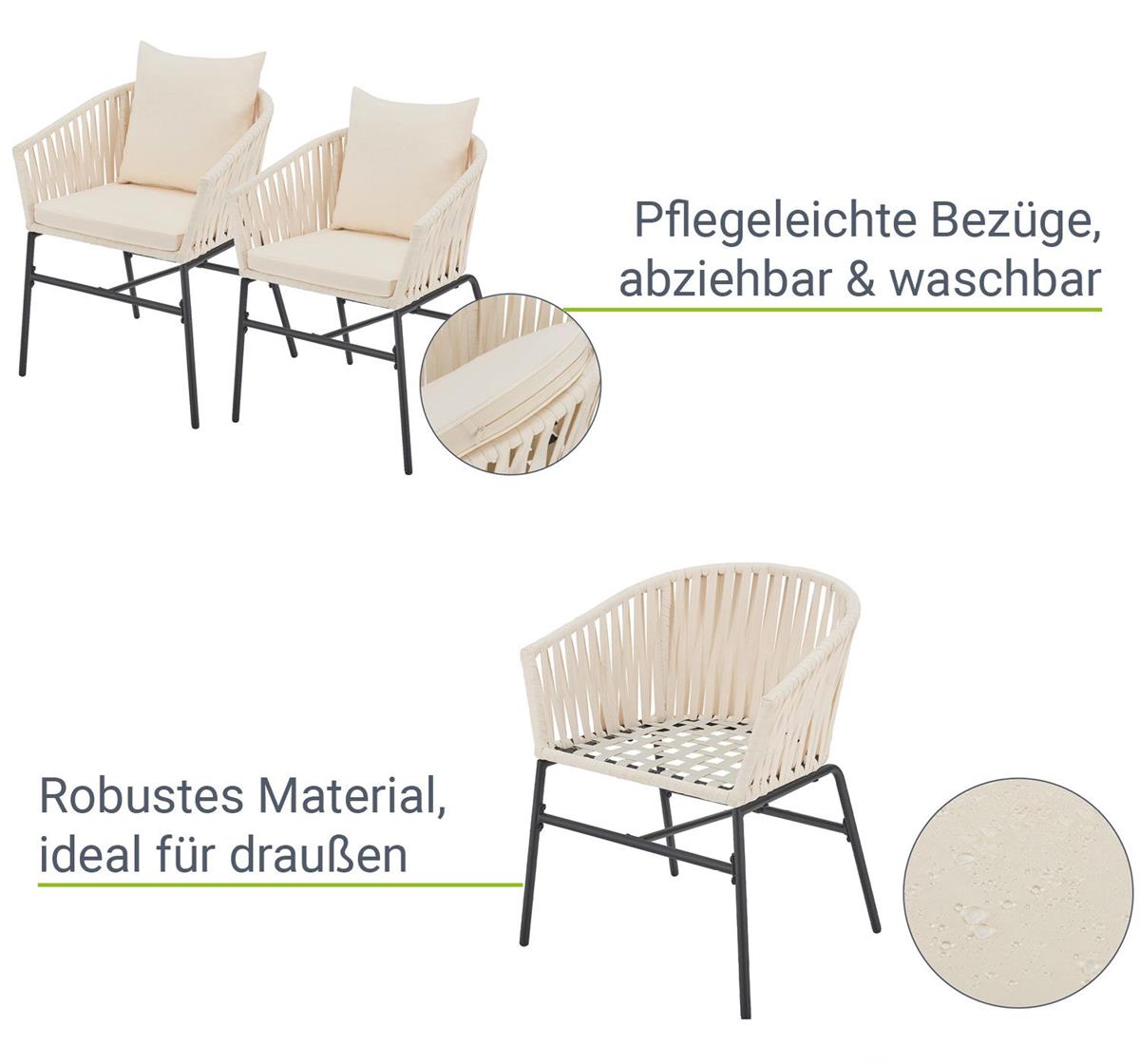 Designer Gartenstühle "Riga" 2er Set der Luxusklasse inkl. Sitzkissen und Rückenkissen mit hochwertigen Seilgeflecht und massiven Stahl Gestell - 6 teilig - das exklusive Gartenmöbel Set für Ihren Garten, Balkon oder Ihre Terrasse