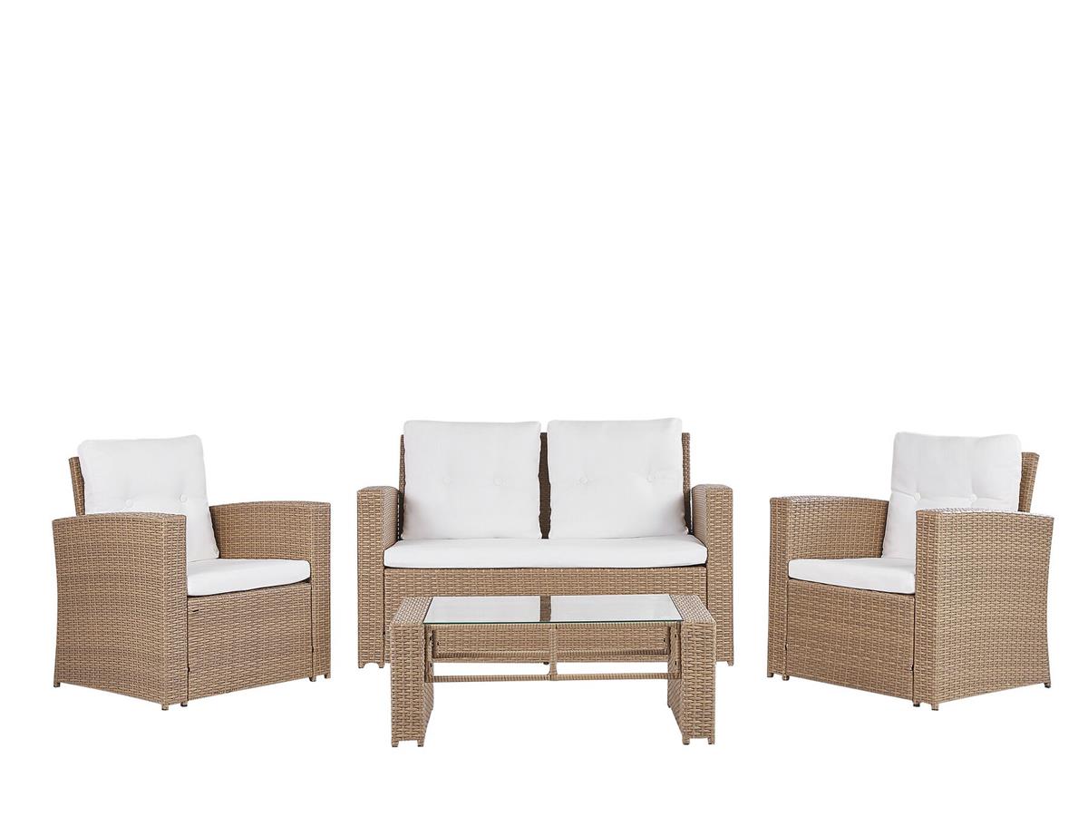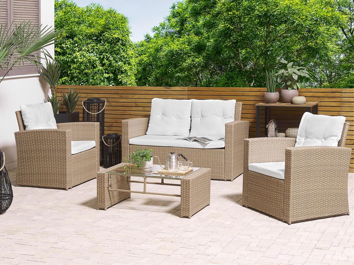 Rattan Gartenmöbel Set "Lucy" Sitzgruppe Rattanlounge für Garten Terrasse Balkon Couch Rattanmöbel hellbraun