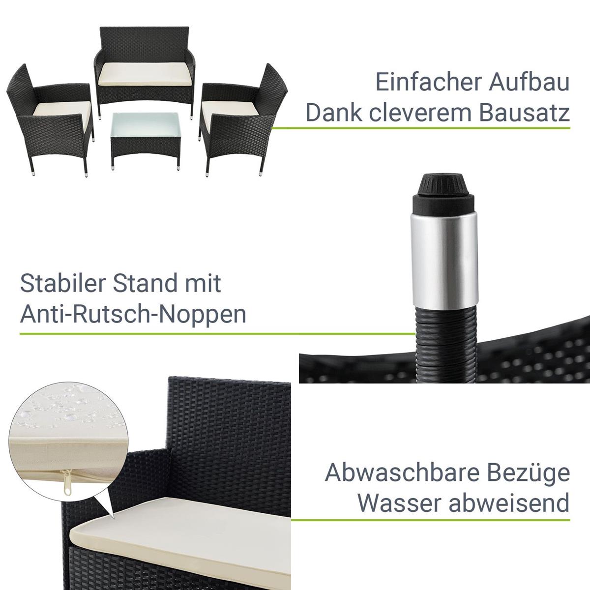 Rattan Gartenmöbel Set Florenz schwarz Sitzgruppe Rattanlounge für Garten Terrasse Balkon Couch Rattanmöbel