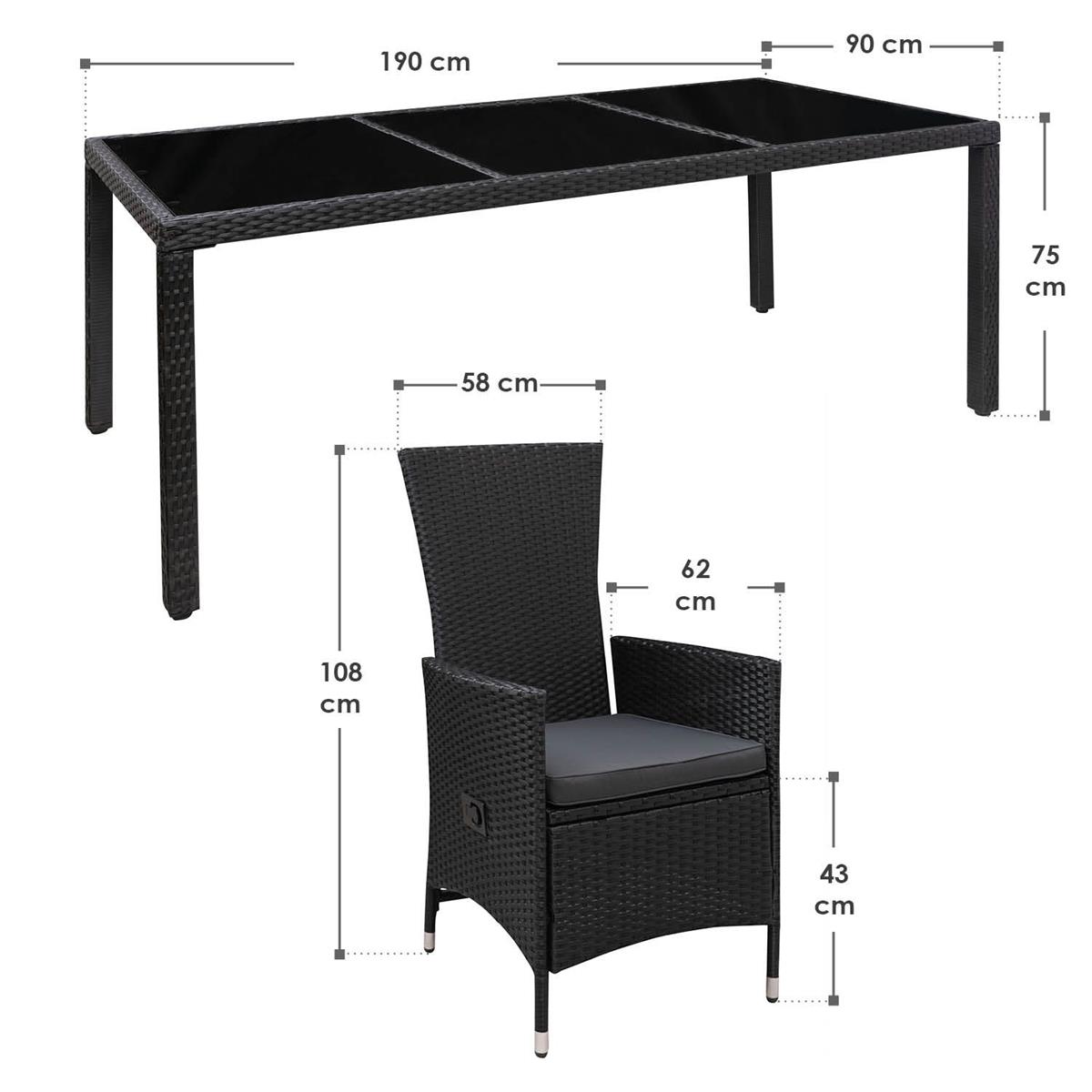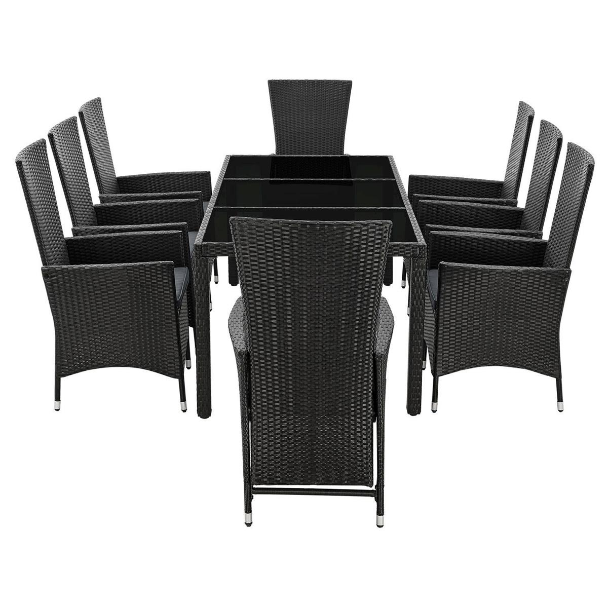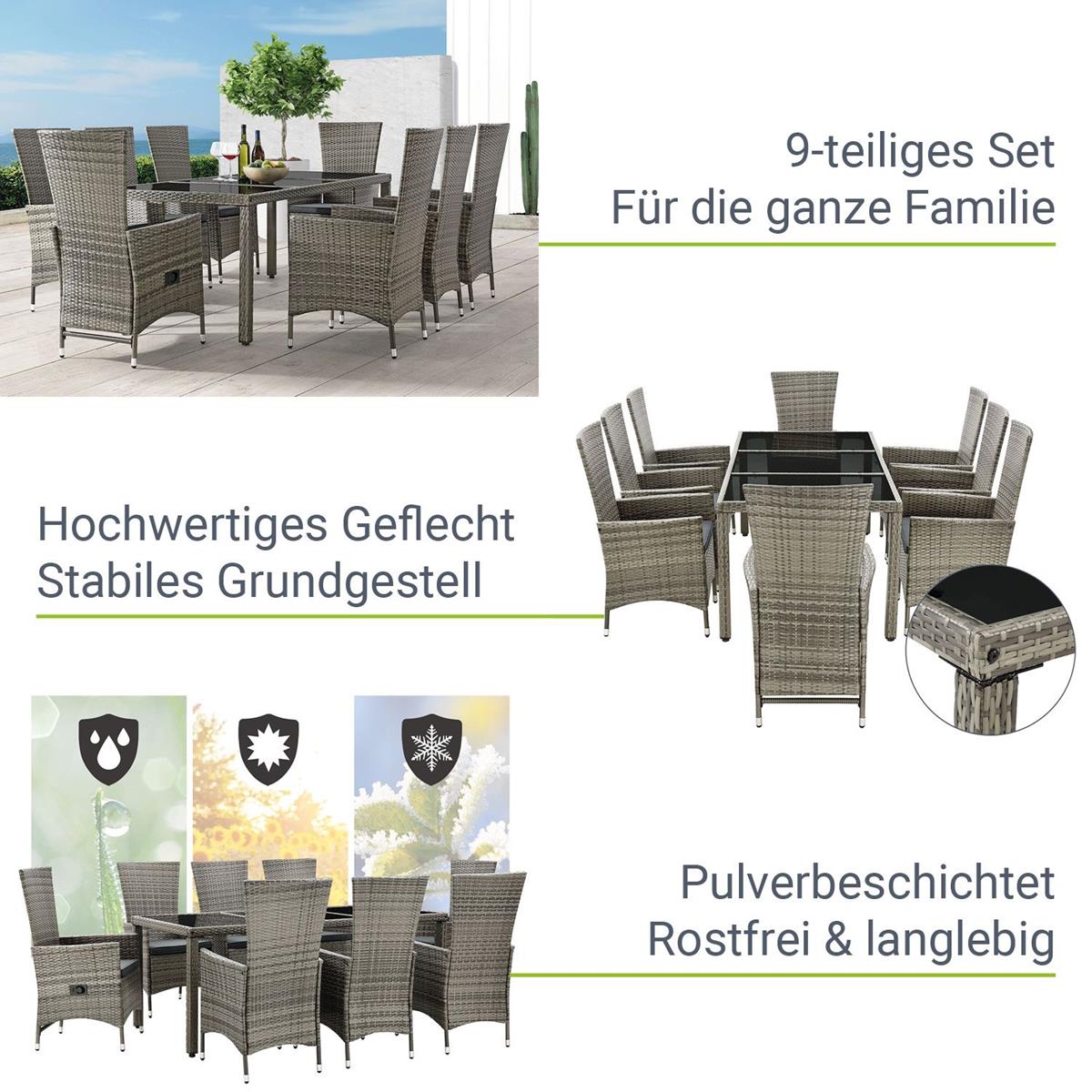 Rattan Gartenmöbel Set Rom schwarz od. grau Sitzgruppe Tisch mit 8 x Stuhl + Gartentisch 190 cm Rattanmöbel günstig für Garten Terrasse Balkon