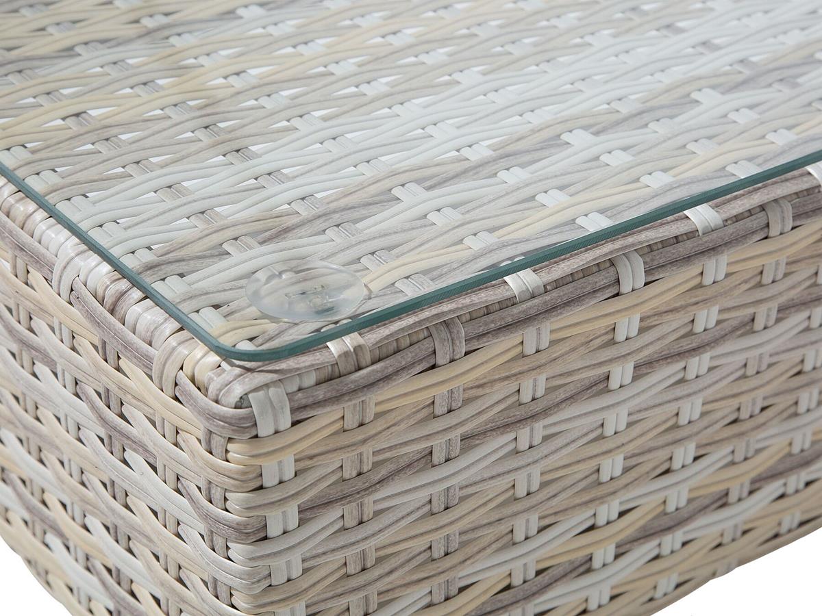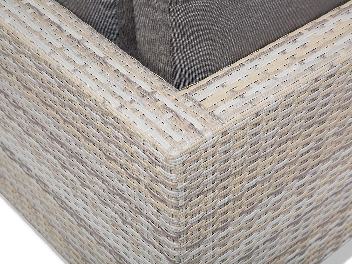 Das Polyrattan Geflecht besteht aus einem neuartigen Rattan ähnlichen Kunststoff, der wetterfest und besonders strapazierfähig ist, wodurch eine besonders dauerhafte Nutzbarkeit der Gartenmöbel sichergestellt wird. Das Material besteht aus einer extrem stabilen Rattan ähnlichen Kunststofffaser, die 100% UV-beständig ist und handgeflochten wird. Polyrattan besteht aus Polyethylen und zeichnet sich durch hohe Belastbarkeit aus.
