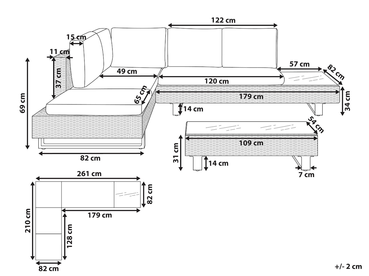 Die edlen Polster und die Kissen sind in der Farbe dunkelgrau und verleihen der Gartenlounge die besondere Eleganz. Zudem haben diese eine wasserabweisende Beschichtung und sind dadurch besonders pflegeleicht. Flecken sind zudem leicht abwischbar oder sogar waschbar, da die Bezüge (aus 100% Polyester) dank verdecktem Reißverschluss abnehmbar sind und bis 40° gewaschen werden können. Zudem sind die Kissen extrem gut und flauschig gepolstert, was immer zu einem absoluten Wohlfühlerlebnis bei der Nutzung für Sie wird.