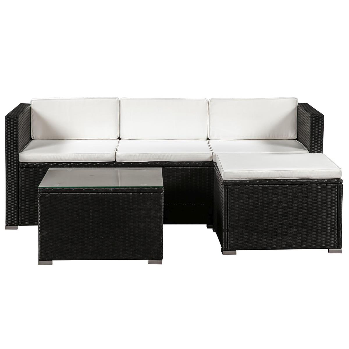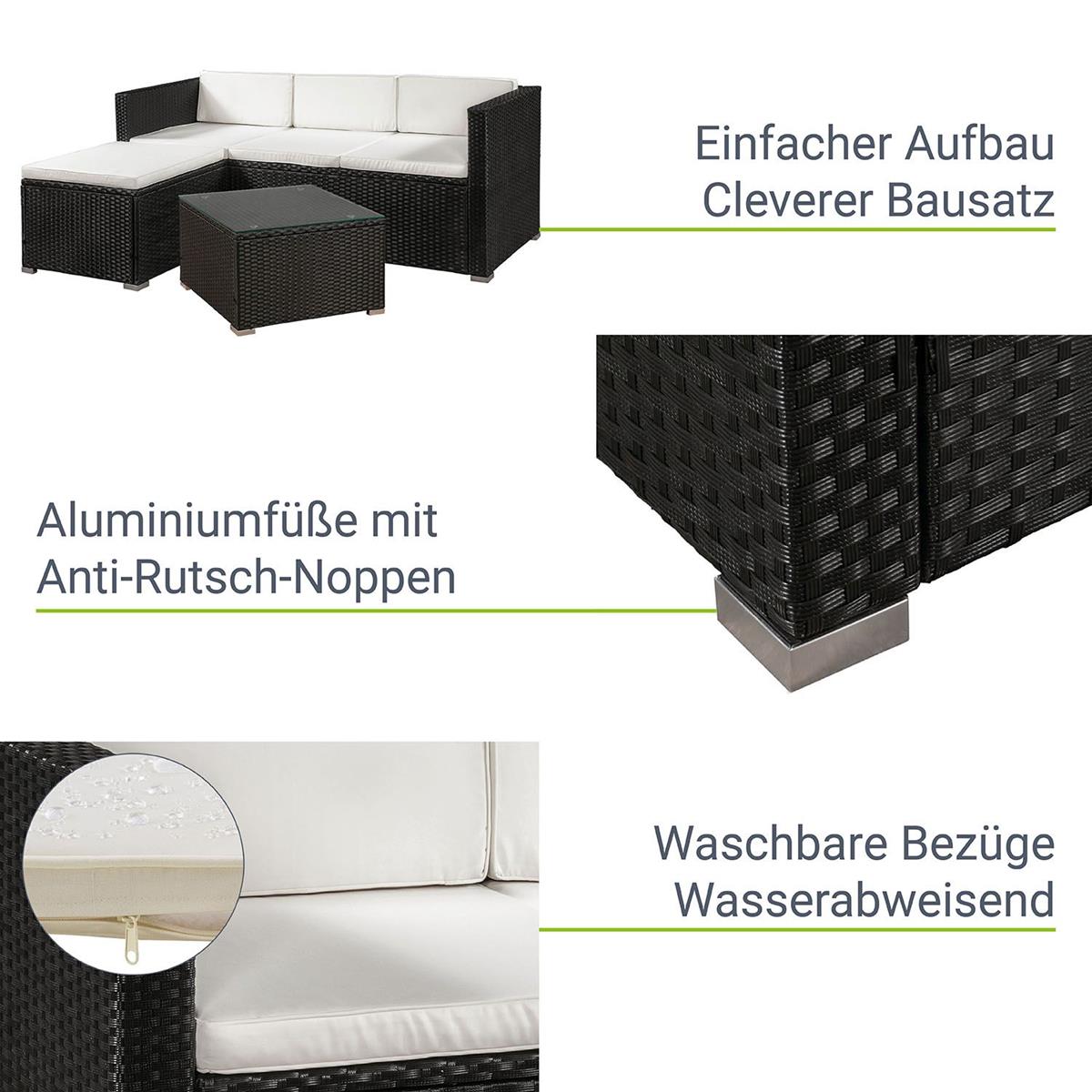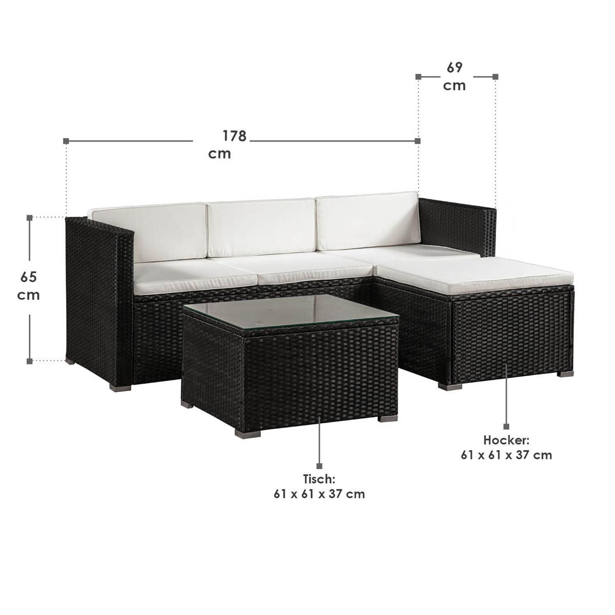 Rattan Gartenmöbel Set Palermo schwarz + weiss Sitzgruppe Rattanlounge für Garten Terrasse Balkon Couch Rattanmöbel