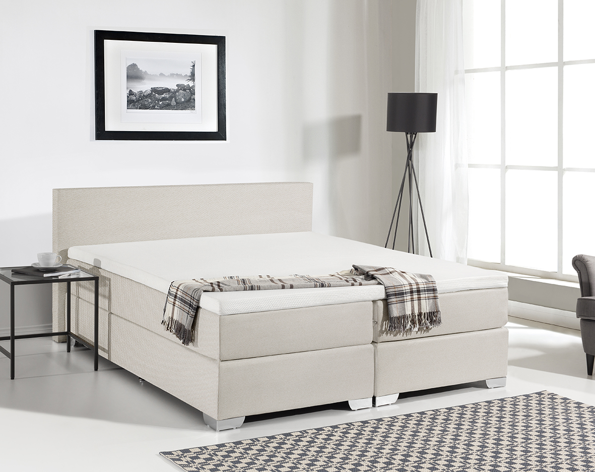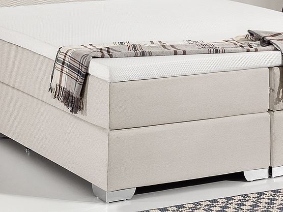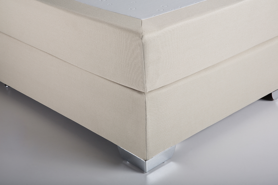 Für das Boxspring Bett werden nur hochwertigste Materialien verwendet. Der edle Bett-Bezug besteht aus robusten pflegeleichten Stoffgewebe. Große verchromte Standfüße runden das Bild dieses Bettes perfekt ab.