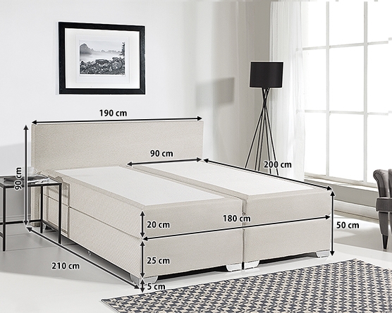 Außenmaß Länge: jeweiliges Maß + 10 cm (Stellfläche z. B. bei 160x200 cm = 170x210 cm)
