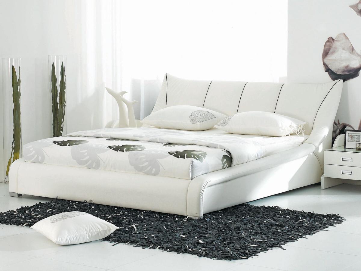 Designer Lederbett / Polster Bett "Royal" edles Leder Bett weiss mit Lattenroste