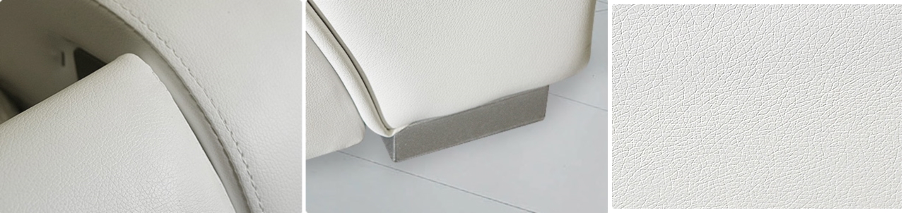 Das Designer Lederbett wird mit hochwertigen Materialien angefertigt. Die Vorderseite des Kopfteils ist mit robusten Echtleder bezogen, der Rest des Bettes mit strapazierfähigen pflegeleichten Kunstleder (94% Polyvinylchlorid (PVC) + 4% Baumwolle + 2% Polyester). Der Bettrahmen besteht aus massiven Hartholz, was eine lange und stabile Haltbarkeit gewährleistet.