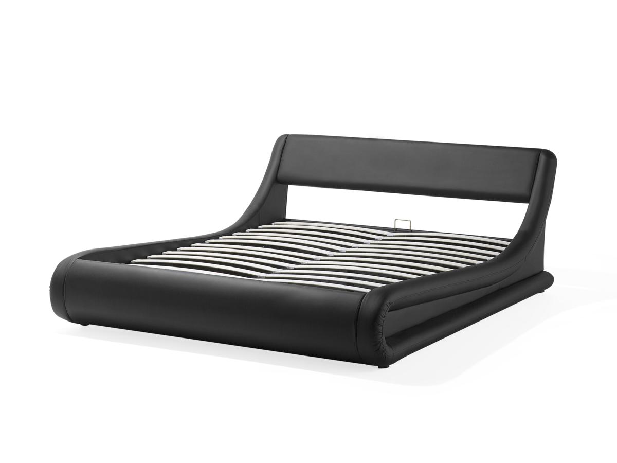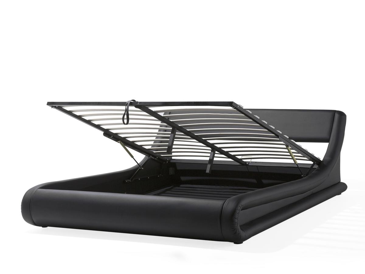 Designer Lederbett "Alicante" schwarz mit BETTKASTEN + Lattenrost Polsterbett aus Kunstleder günstig