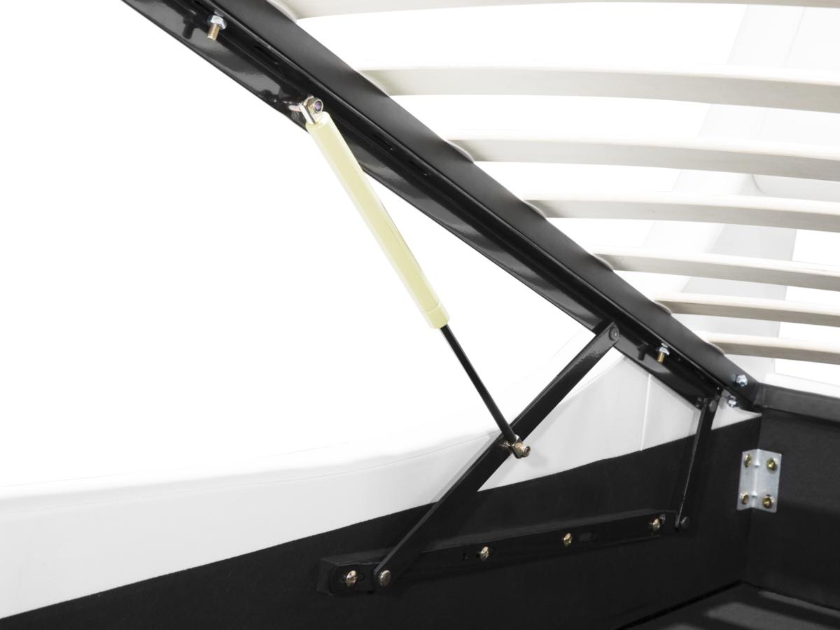 Als Highlight ist das Bett mit einem Bettkasten ausgestattet. Der mitgelieferte Lattenrost ist zusätzlich mittels praktischen Gasdruckfedern von vorne (also am Fußteil) bequem hochstellbar. Es ist genügend Stauraum für Bettwäsche, Decken und Kissen vorhanden (Höhe Bettkasten 24 cm).
