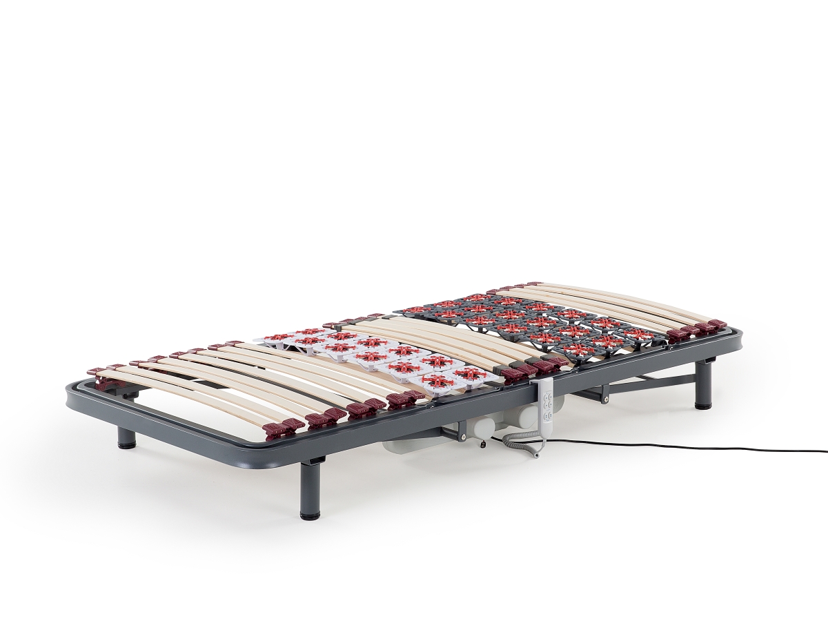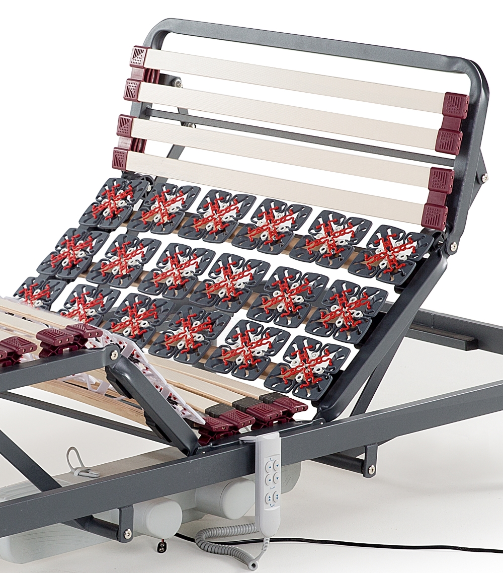 • Der Lattenrost „Moonlight“ mit 7 Liegezonen und Motor zur elektrischen Verstellung von Kopf- und Fußteil!
