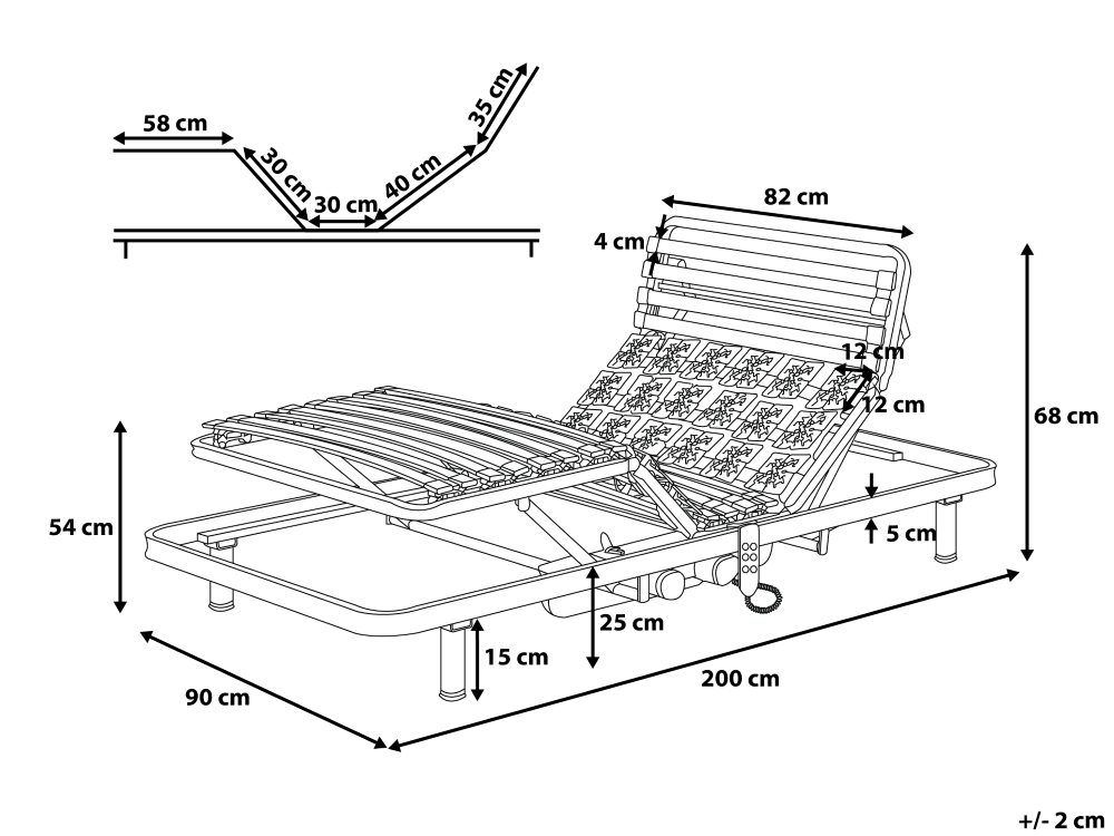 • Geeignet für alle Matratzenarten (Höhe ca. 9 cm; für den Motor werden nur 15 cm Bodenfreiheit benötigt) und hervorragende Belüftung der Matratze