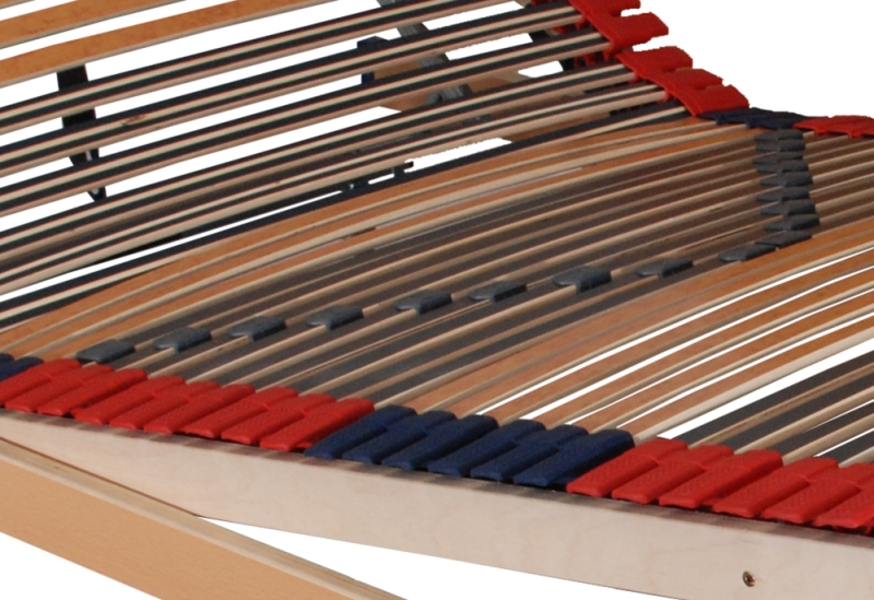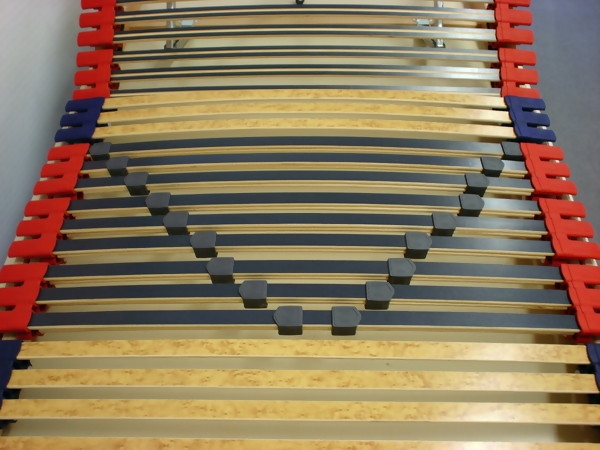 Der Rahmen hat 45 flexibel gelagerte vollbuche Federholzleisten, die in dreipunktgelagerten Kautschukkappen (Trio Kautschukkappen) gesteckt sind und eine lange Federwirkungsgarantie gewährleisten. Die Federholzleisten sind nach neuesten Ergonomie-Erkenntnissen gefertigt, bieten höchste Punktelastizität über die gesamte Liegefläche und verlaufen bis über die Außenholme (holmübergreifend).