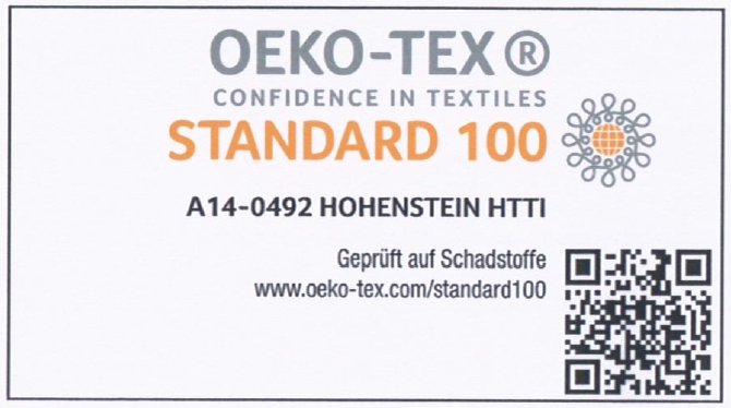 Öko Tex Standard 100 (A14-0492 Hohenstein HTTI)