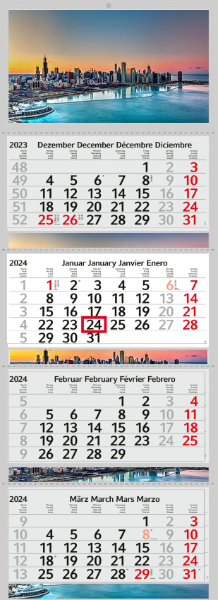 Weiterführende Links zu "4 Monatskalender 2024 Kalender USA Skyline Chicago Stadt Motiv Fotokalender Großstadt ohne Werbung Wandkalender Mehrblockkalender Motivkalender"