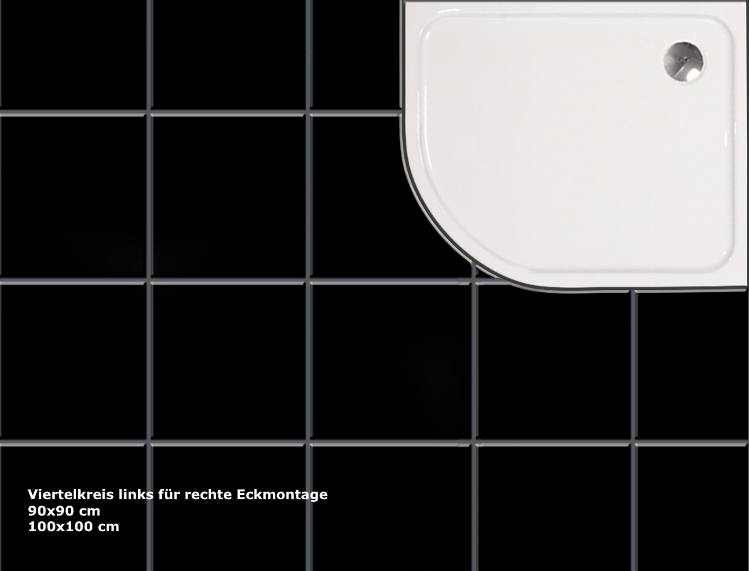 - Erhältlich in viertelkreis links 90x90 + 100x100 cm (für rechte Eckmontage)