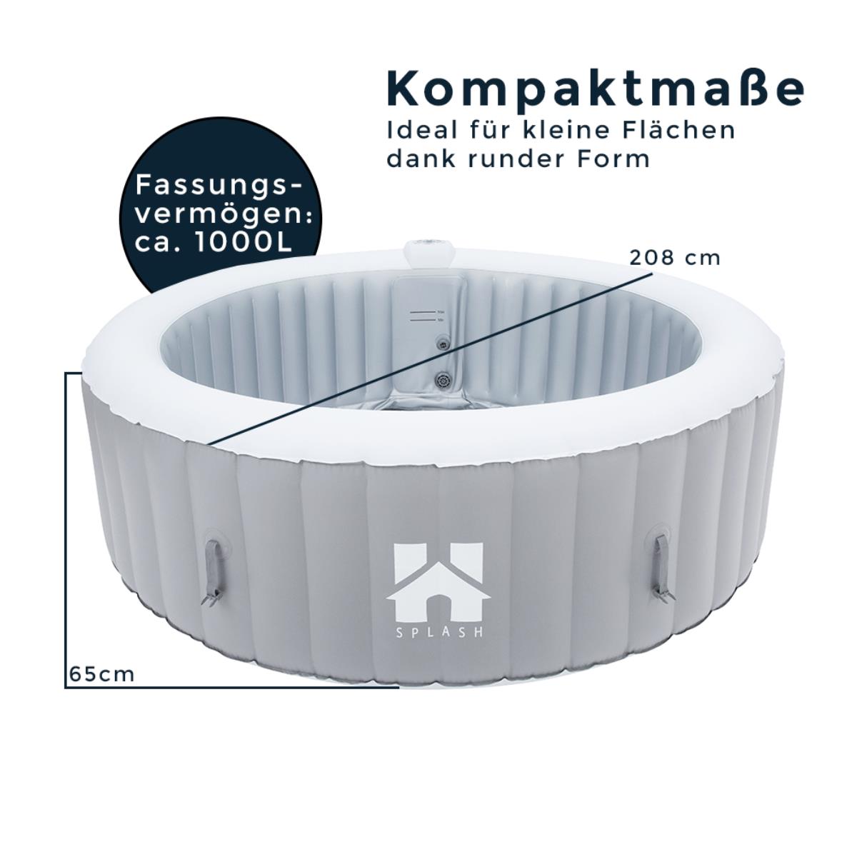 - Der Outdoor Whirlpool St. Moritz Splash ist aus robustem und hochwertigen PVC in einer runden Form gefertigt. Daher ist der Pool für den Innen- und Aussenbereich perfekt geeignet (geringer Platzbedarf)