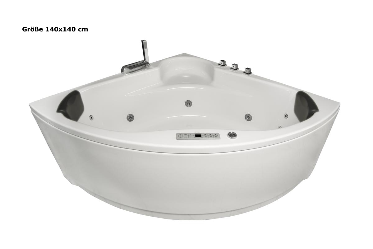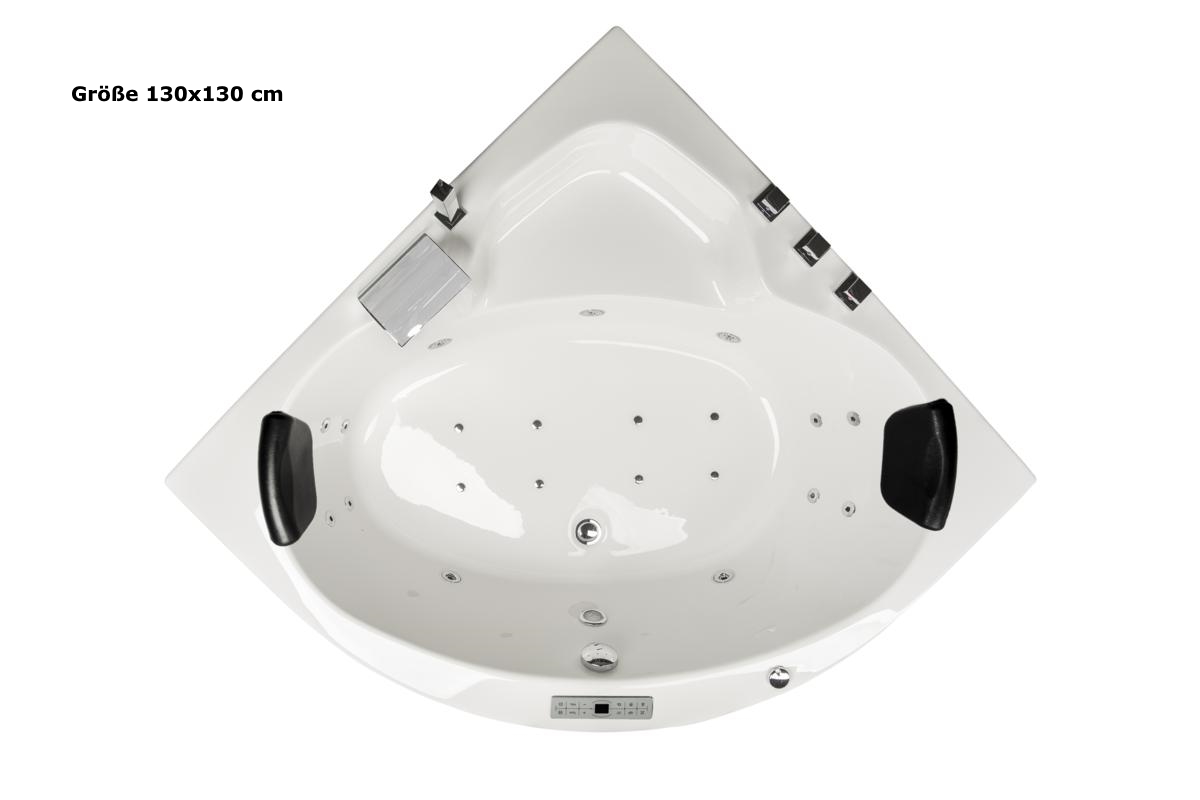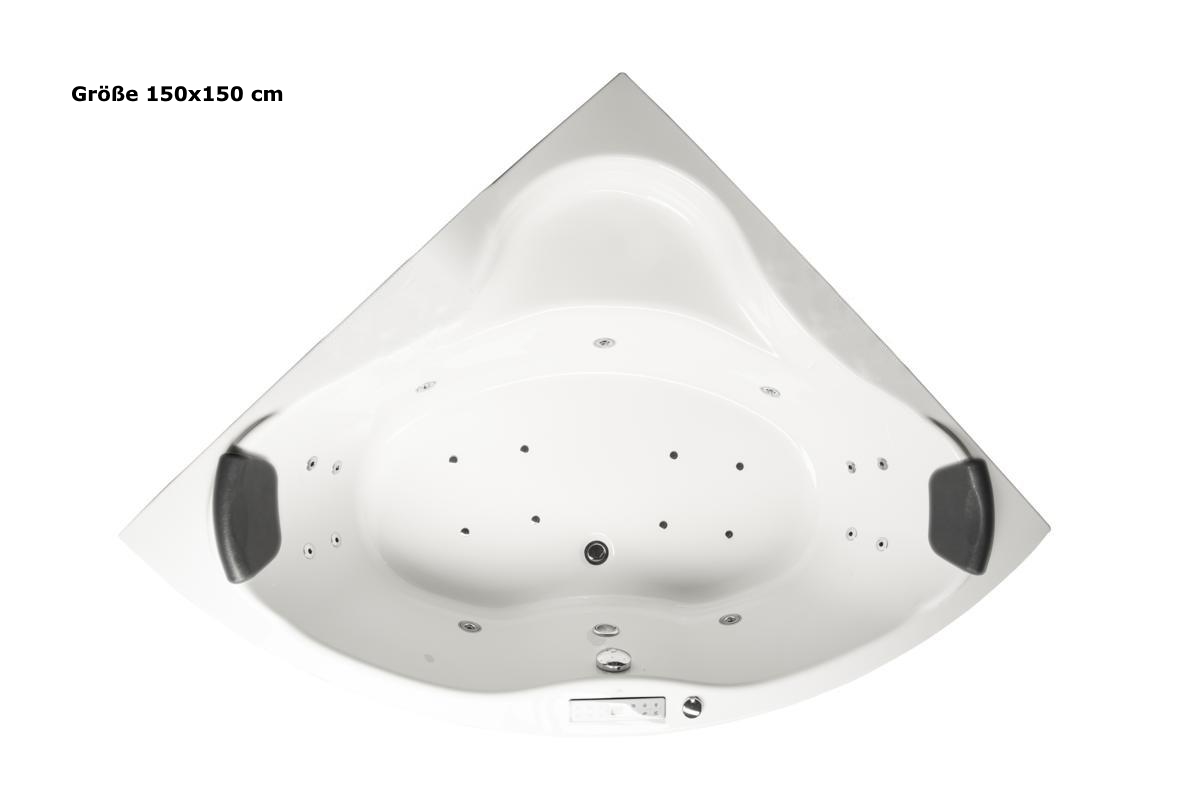 Whirlpool Badewanne Karibik Profi mit 21/25 Massage Düsen + Heizung + Ozon + Beleuchtung + 4 Größen wählbar