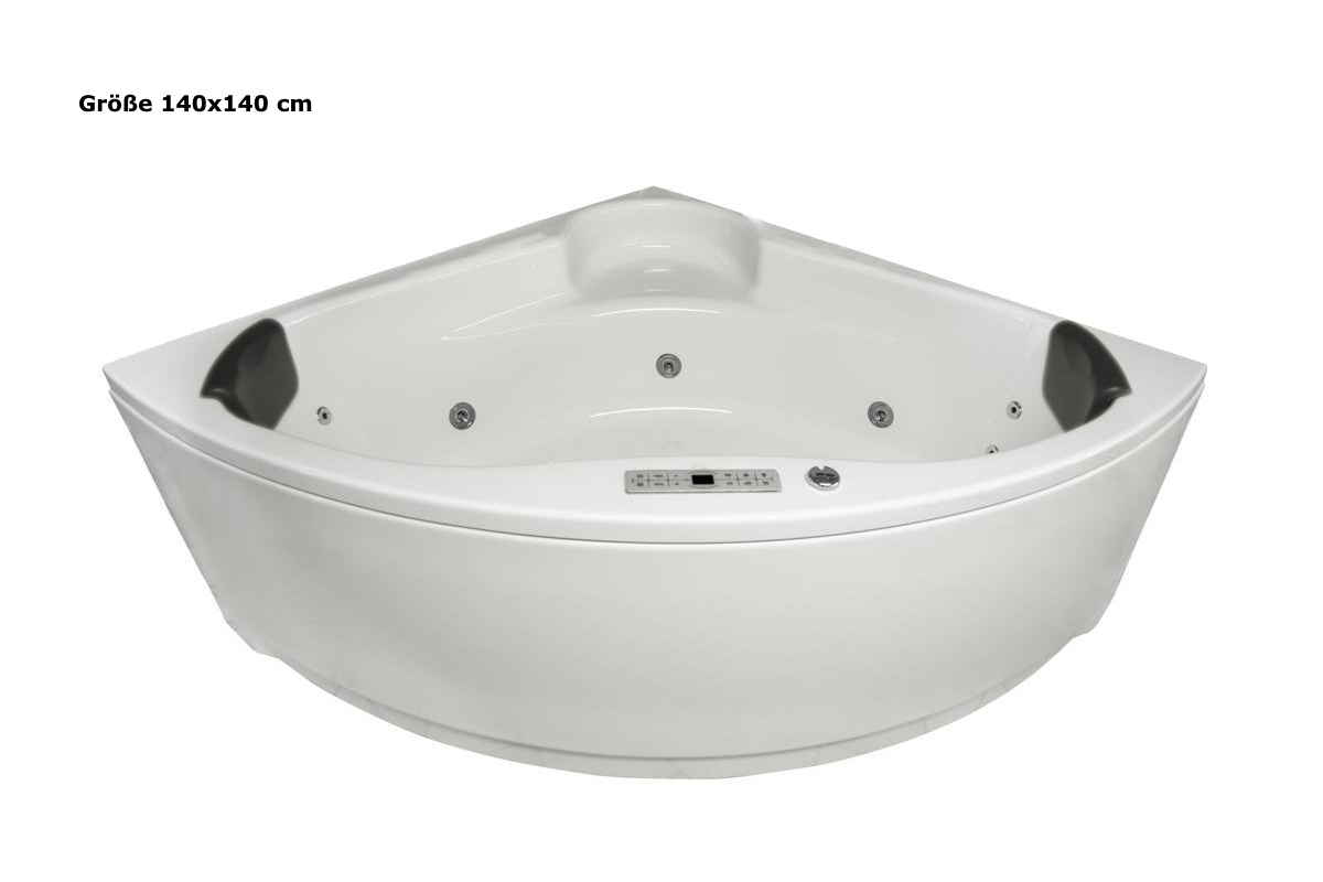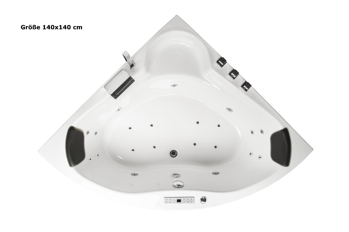 Whirlpool Badewanne "Karibik Profi" mit 21 oder 25 Massage Düsen + Heizung + Ozon Desinfektion + LED Beleuchtung + Ablagefläche + Radio + Kopfstützen + 4 verschiedene Größen wählbar! Der Premium Whirlpool für Ihr Badezimmer!
