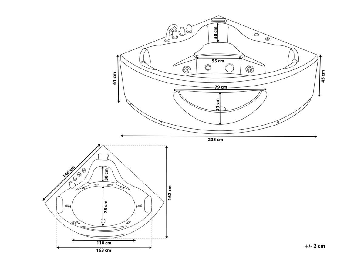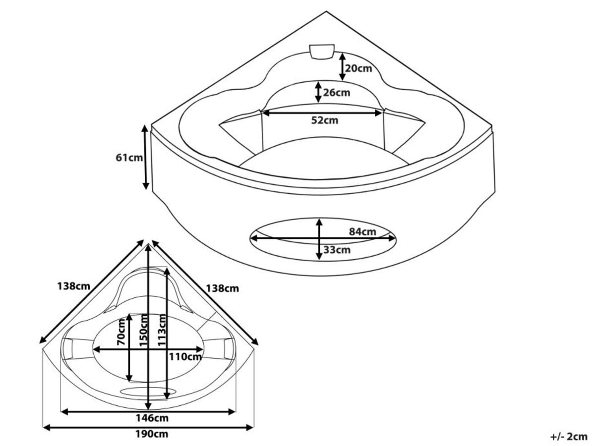 - Optimal für 2 Personen konstruiert - einem romantischen Bad zu Zweit steht nichts mehr im Wege