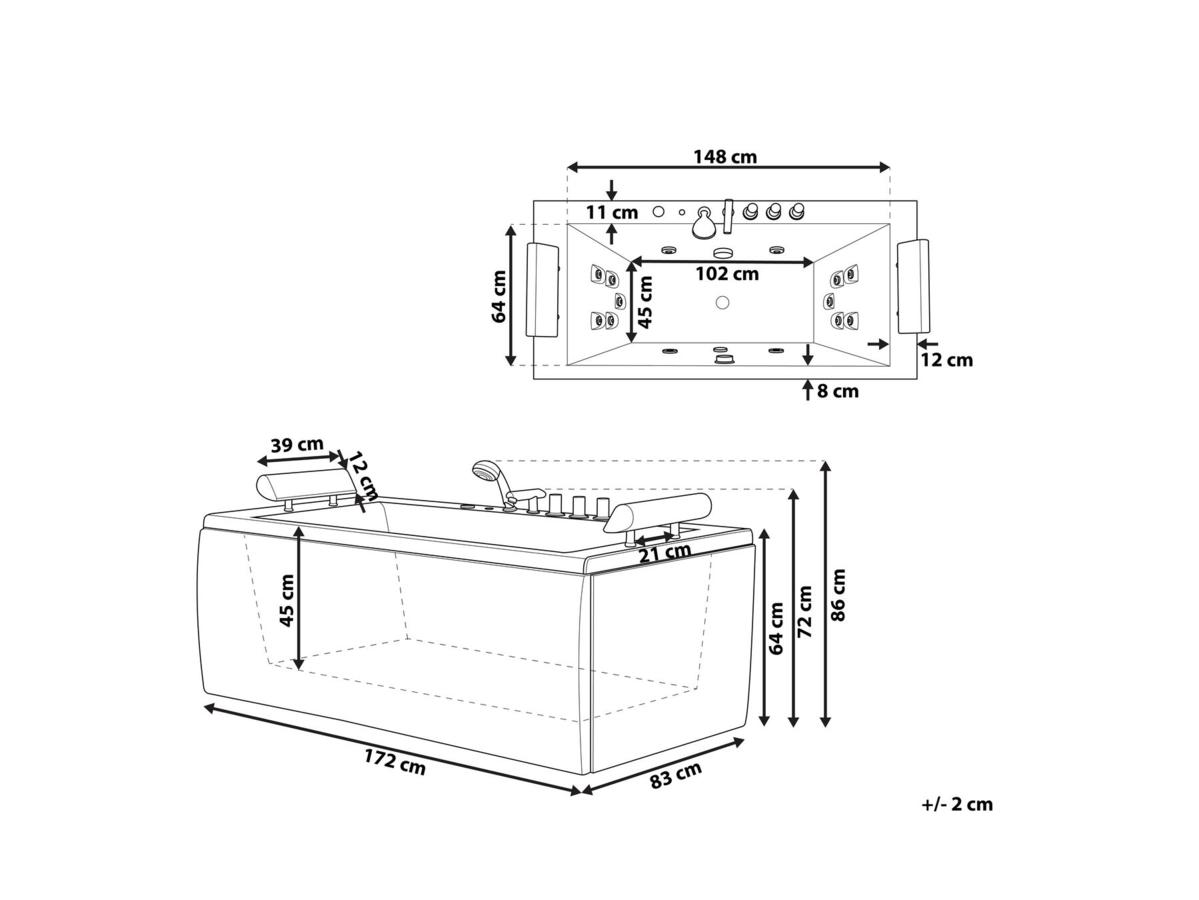 - 14 Massagedüsen (4x JetStream + 10x Rückendüsen)