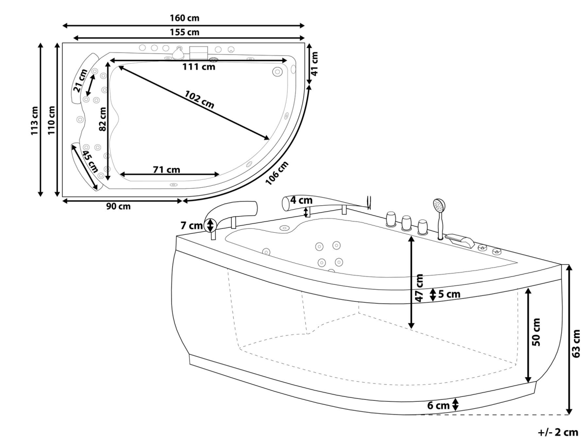 - 15 Massagedüsen (5x JetStream + 10x Rückendüsen)
