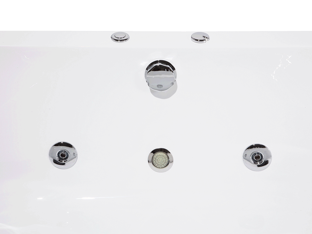 - 4 kraftvolle JetStream Düsen sind im Seitenbereich der Badewanne angebracht. Diese massieren Sie mit kraftvollen Wasserstrahlen und bieten perfekte Entspannung in Ihrem Badezimmer. Mittels eines drehbaren Armaturenregler, können Sie zusätzlich den Wasserdruck individuell einstellen