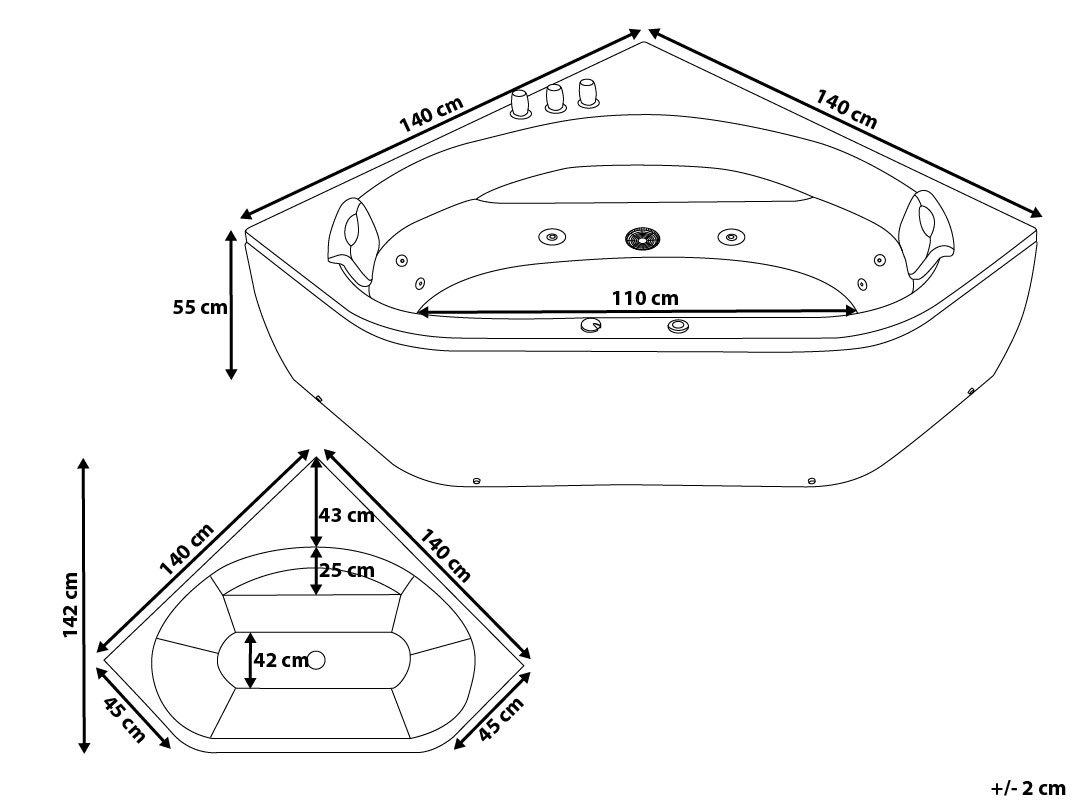 - Abnehmbare Schürze. Whirlpool kann rechts oder links in eine Ecke montiert werden.
