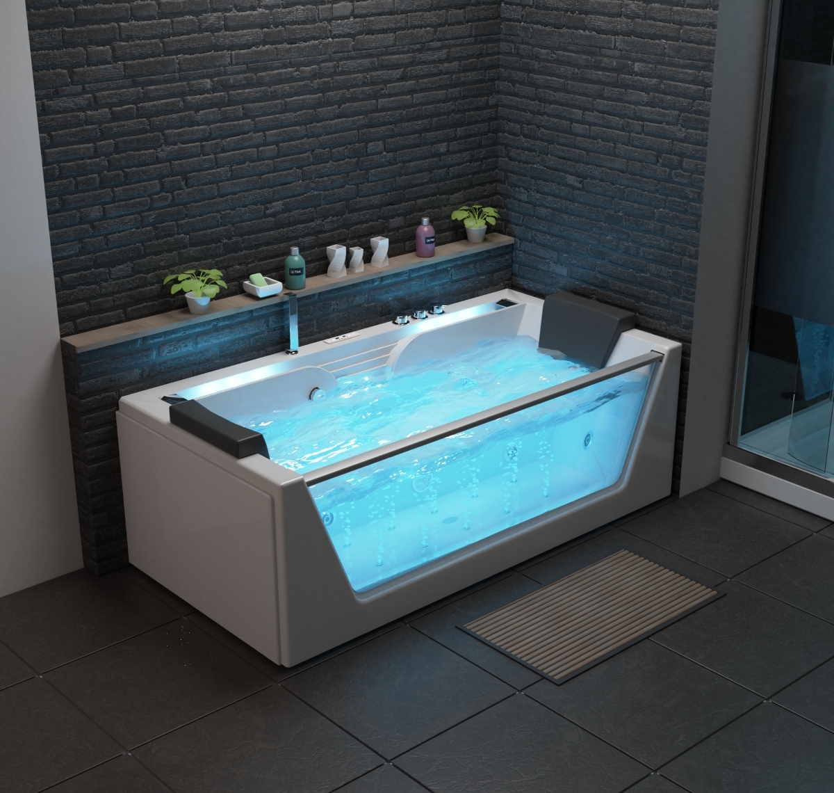 - Das integrierte LED Unterwasserlicht sorgt während dem Baden für eine besondere Wohlfühl-Atmospäre. Die Beleuchtung verleiht Ihrem Bad im Dunkeln einen extravaganten Touch und leistet zusätzlich eine Art entspannende Lichttherapie. Insgesamt 8 Farben verwandeln die Beleuchtung des Wassers automatisch.