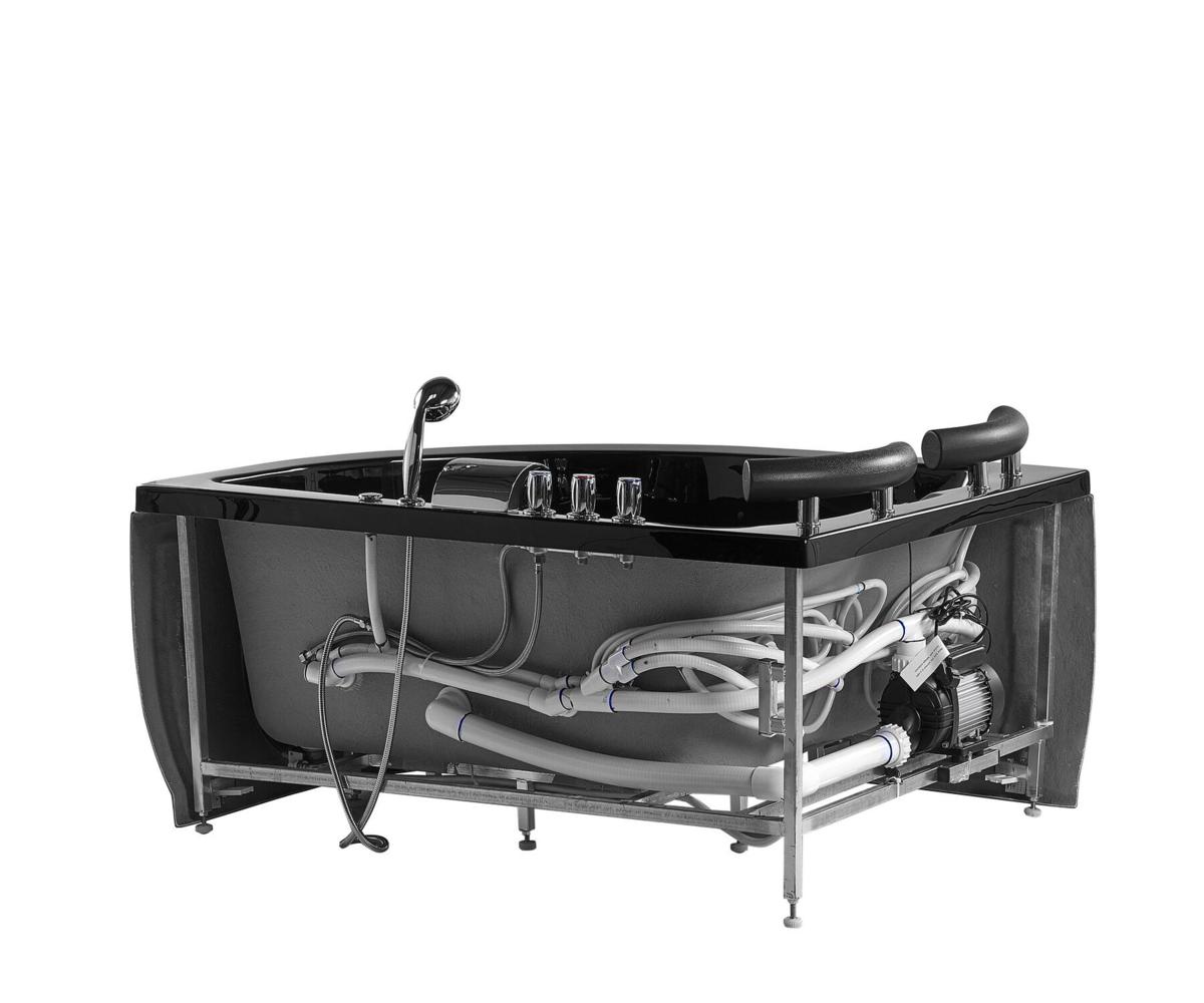 Whirlpool Doppel Badewanne Palermo LINKS schwarz 160x113 cm für 2 Personen mit 15 Massage Düsen + LED große Luxus Eckwanne