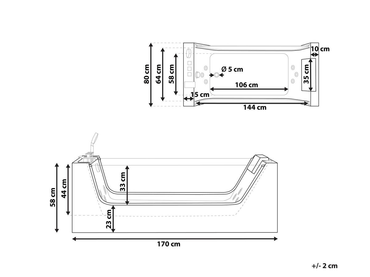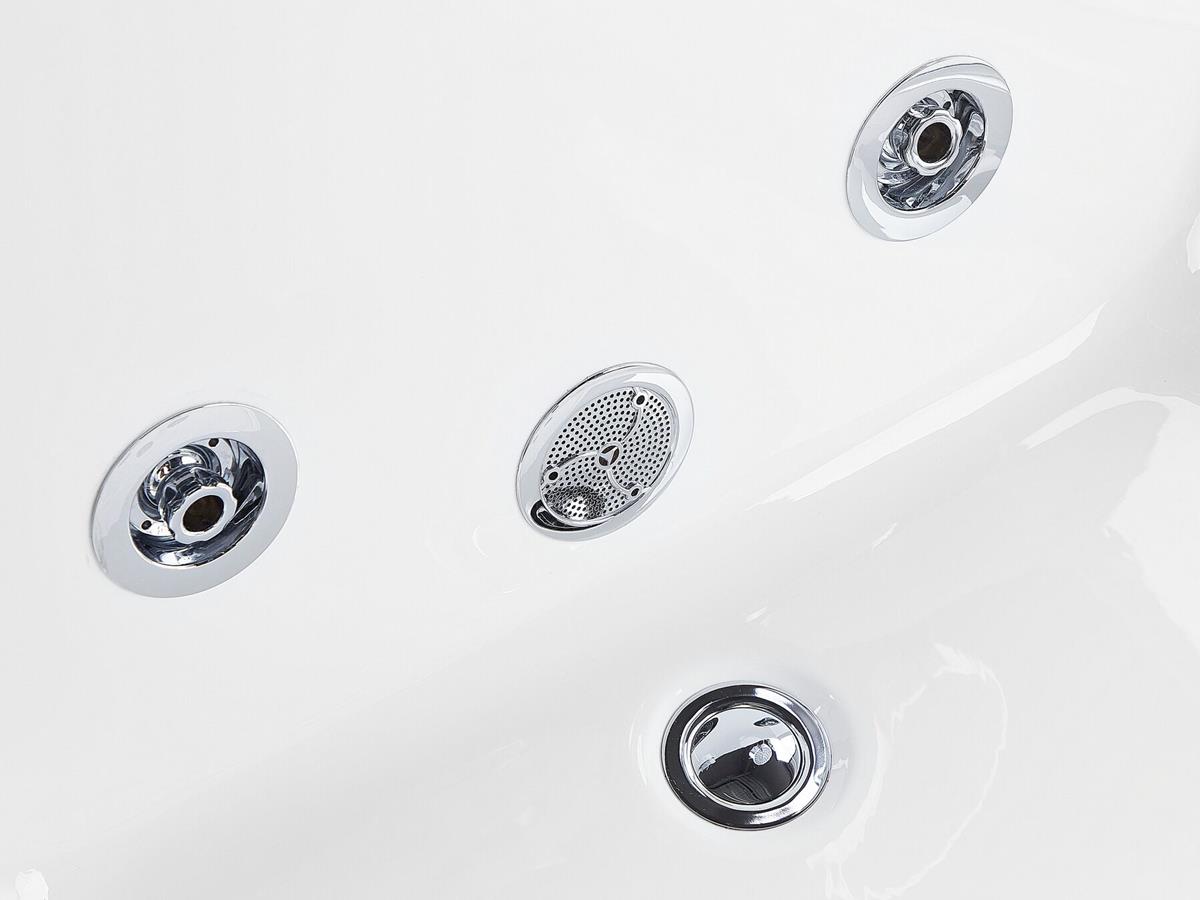 - 5 kraftvolle JetStream Düsen sind im Rücken- und Fußbereich der Badewanne angebracht. Diese massieren Sie mit kraftvollen Wasserstrahlen und bieten perfekte Entspannung in Ihrem Badezimmer. Mittels eines drehbaren Armaturenregler, können Sie zusätzlich den Wasserdruck individuell einstellen