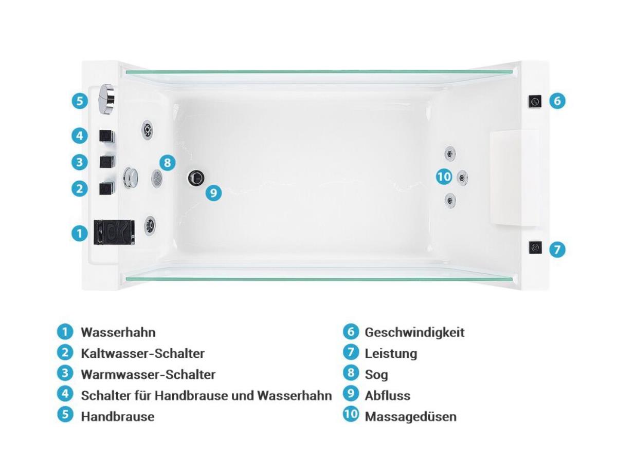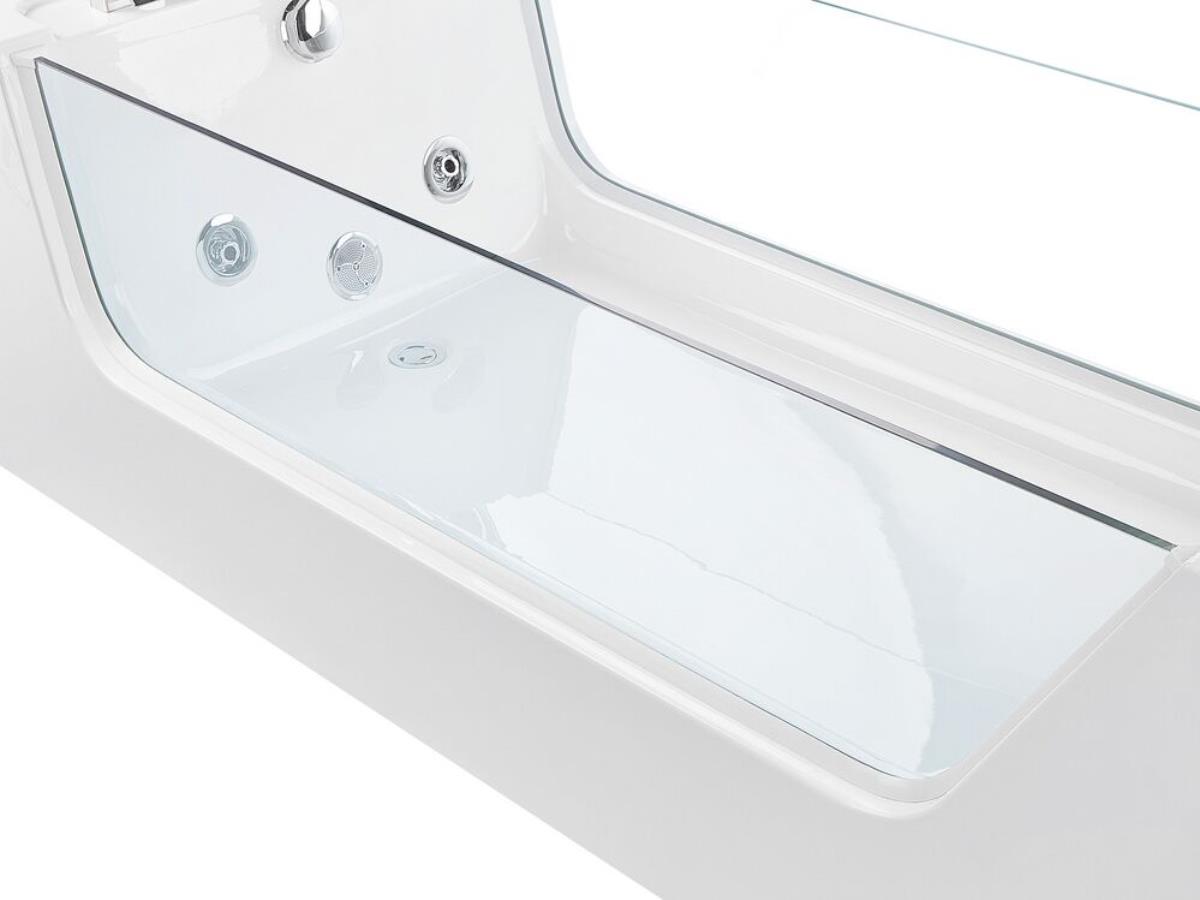 - Exklusive durchsichtige beidseitige Glasfront aus Sicherheitsglas an der Frontseite der Badewanne, machen diesen Whirlpool zum absoluten Hingucker in Ihrem Badezimmer