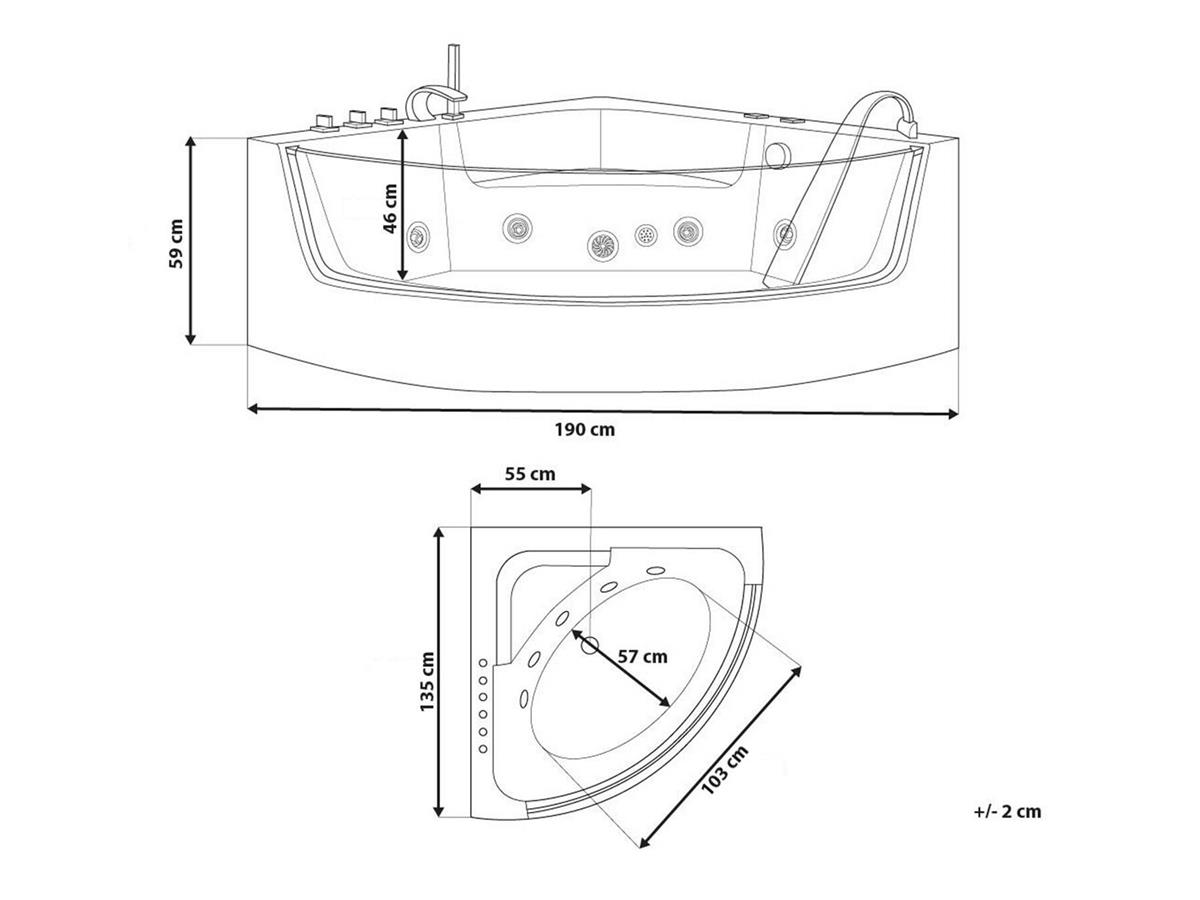 - Das integrierte LED Unterwasserlicht sorgt während dem Baden für eine besondere Wohlfühl-Atmospäre. Die Beleuchtung verleiht Ihrem Bad im Dunkeln einen extravaganten Touch und leistet zusätzlich eine Art entspannende Lichttherapie. Insgesamt 7 Farben verwandeln die Beleuchtung des Wassers automatisch.