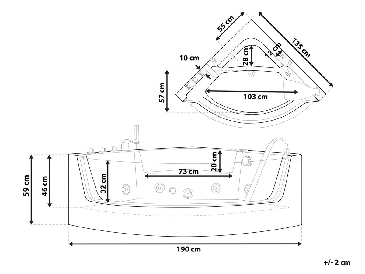 - Das integrierte LED Unterwasserlicht sorgt während dem Baden für eine besondere Wohlfühl-Atmospäre. Die Beleuchtung verleiht Ihrem Bad im Dunkeln einen extravaganten Touch und leistet zusätzlich eine Art entspannende Lichttherapie. Insgesamt 7 Farben verwandeln die Beleuchtung des Wassers automatisch.