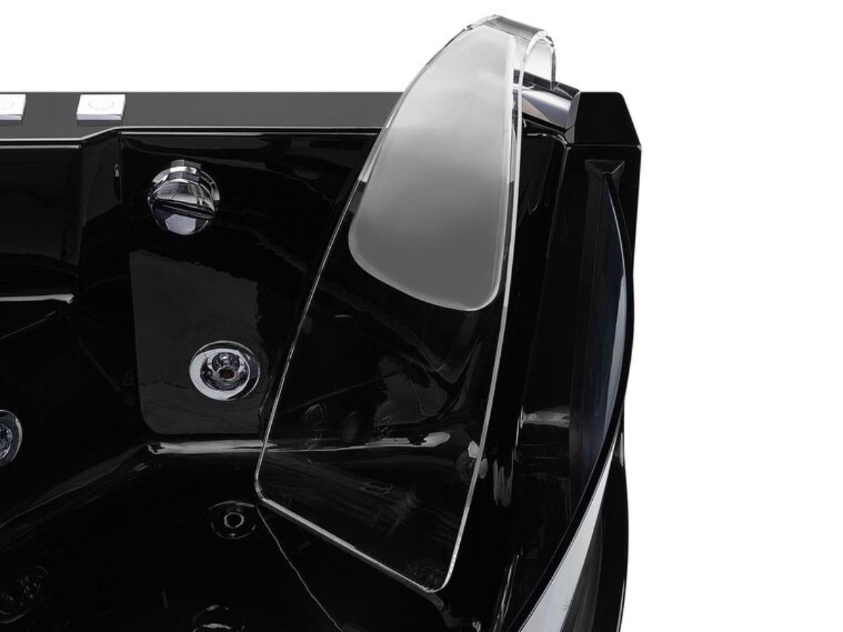 Whirlpool Badewanne Marburg 135x135 cm schwarz mit 4 Massage Düsen LED Beleuchtung Glasfront Luxus Glas Spa für Bad